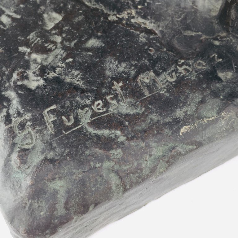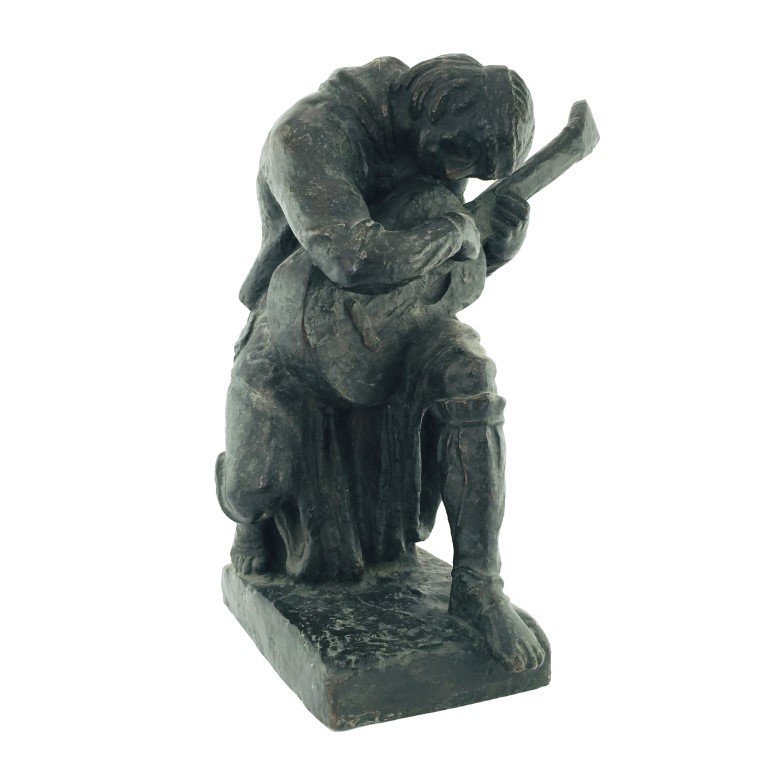 FUREST MUÑOZ, Gervasio (escuela uruguaya, 1896-1968). Escultura en bronce pátina oscura. «El payador.» Firmada en la base. 39 x 27 x 26 cm.