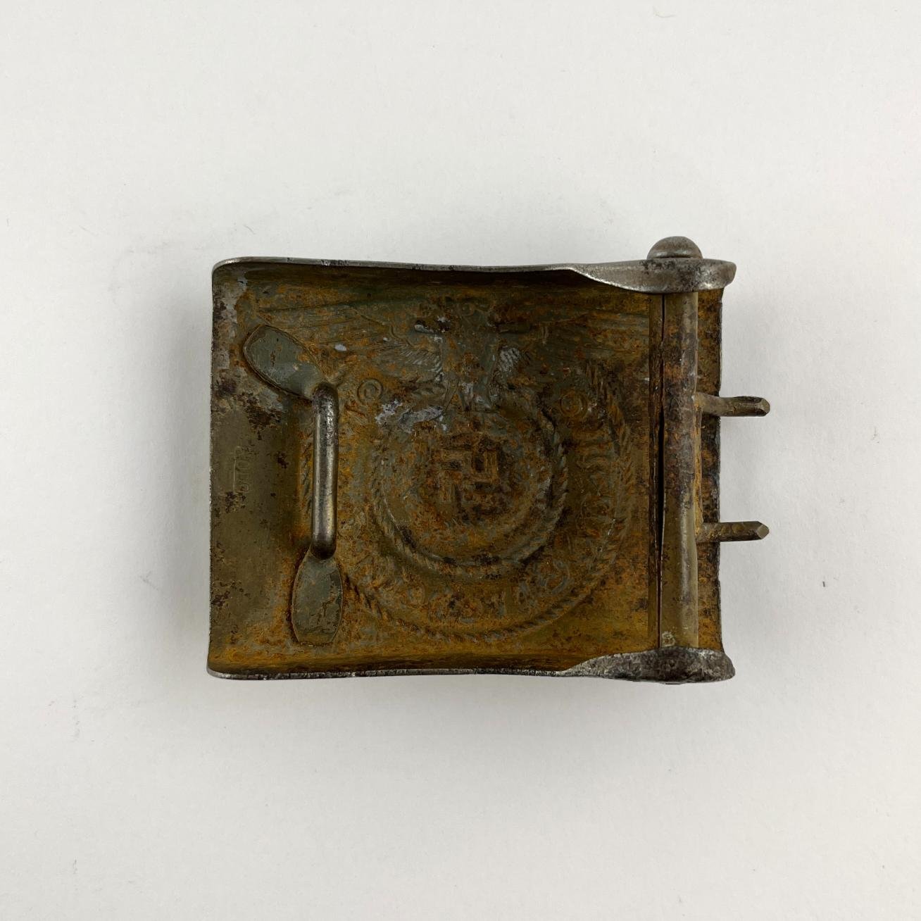 Hebilla alemana época nacionalsocialista para tropa o suboficial de Waffen, en hierro estampado, época WWII, con sello estampado del fabricante Rodo.