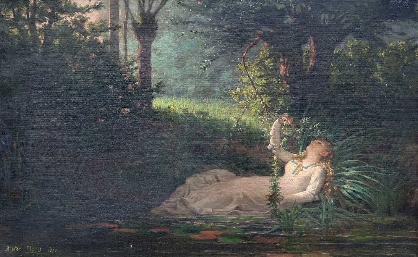 HENRI-PIERRE PICOU (Escuela francesa, 1824-1895) Ofelia Óleo sobre tela Firmado, titulado y fechado «1877» abajo a la izquierda 35 x 55 cm