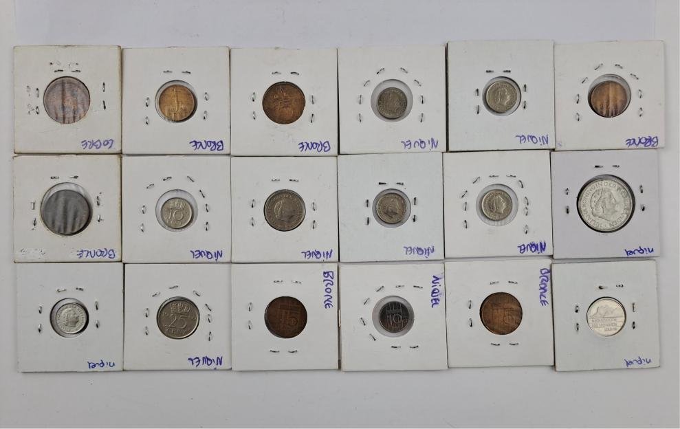 Cuarenta y dos monedas de los Países Bajos, veinticuatro de ellas en plata.