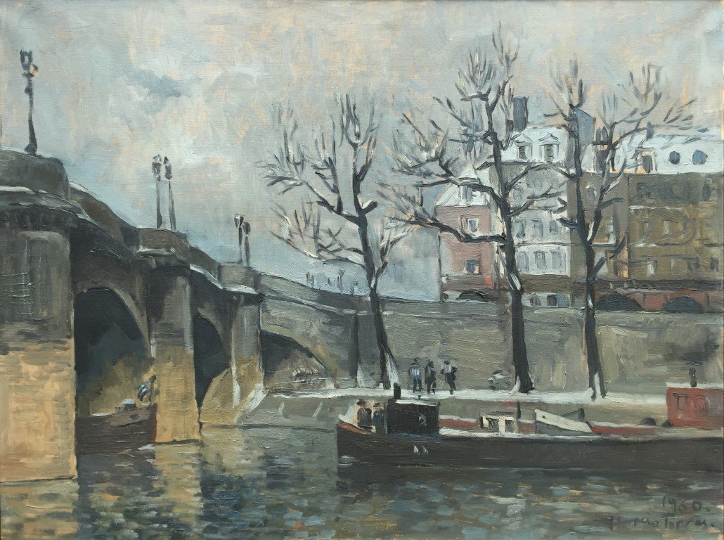 TORRES, Horacio (escuela uruguaya, 1924-1976). Óleo sobre tela. «Pont Neuf.» Firmado y fechado «1960» abajo a la derecha. 80 x 105 cm.