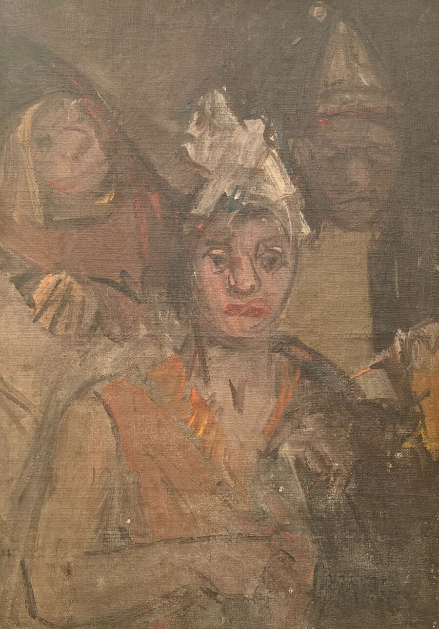 HUGO NANTES (1933-2009) «Personajes» Óleo sobre tela pegada en fibra Período década 1960 Firmado abajo a la derecha 86 x 62 cm