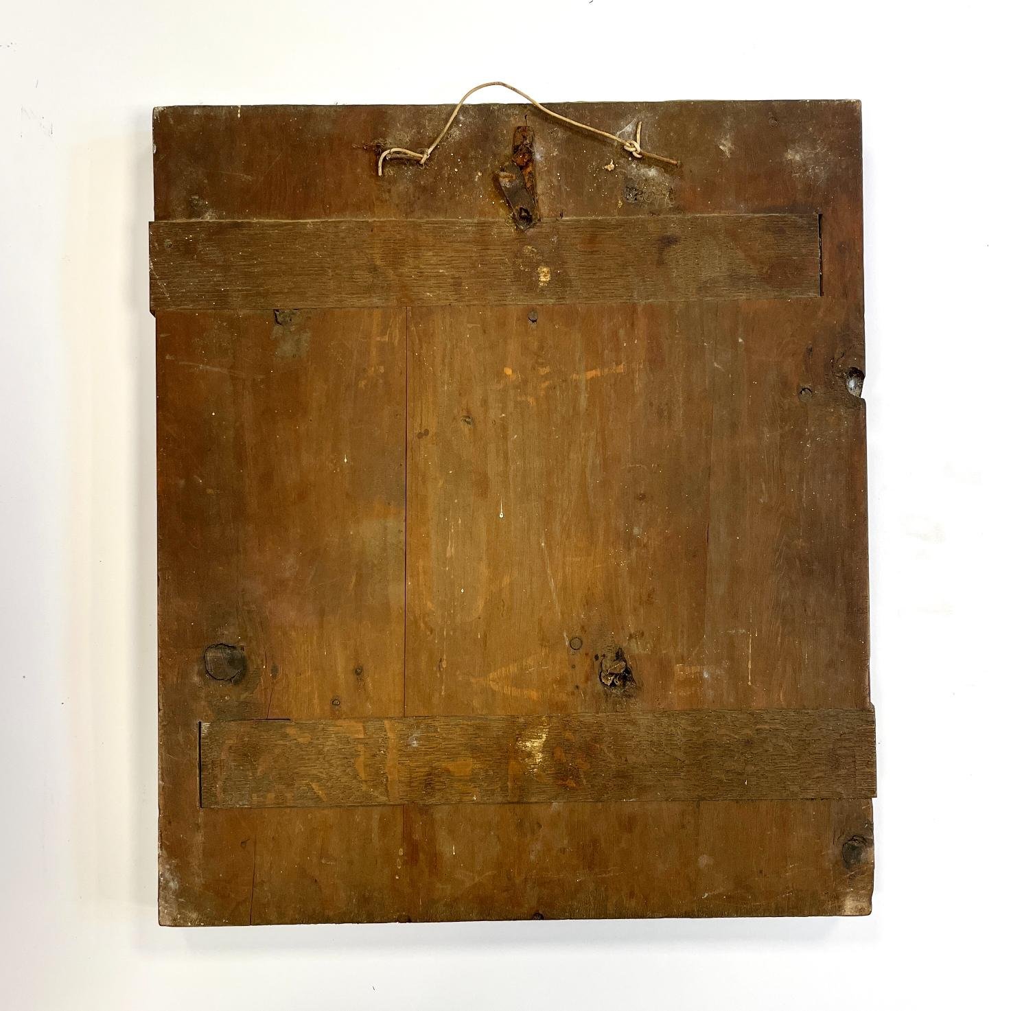 Ícono ortodoxo ruso. Óleo y lámina de oro sobre madera. «Santos.» 35,5 x 31 cm.