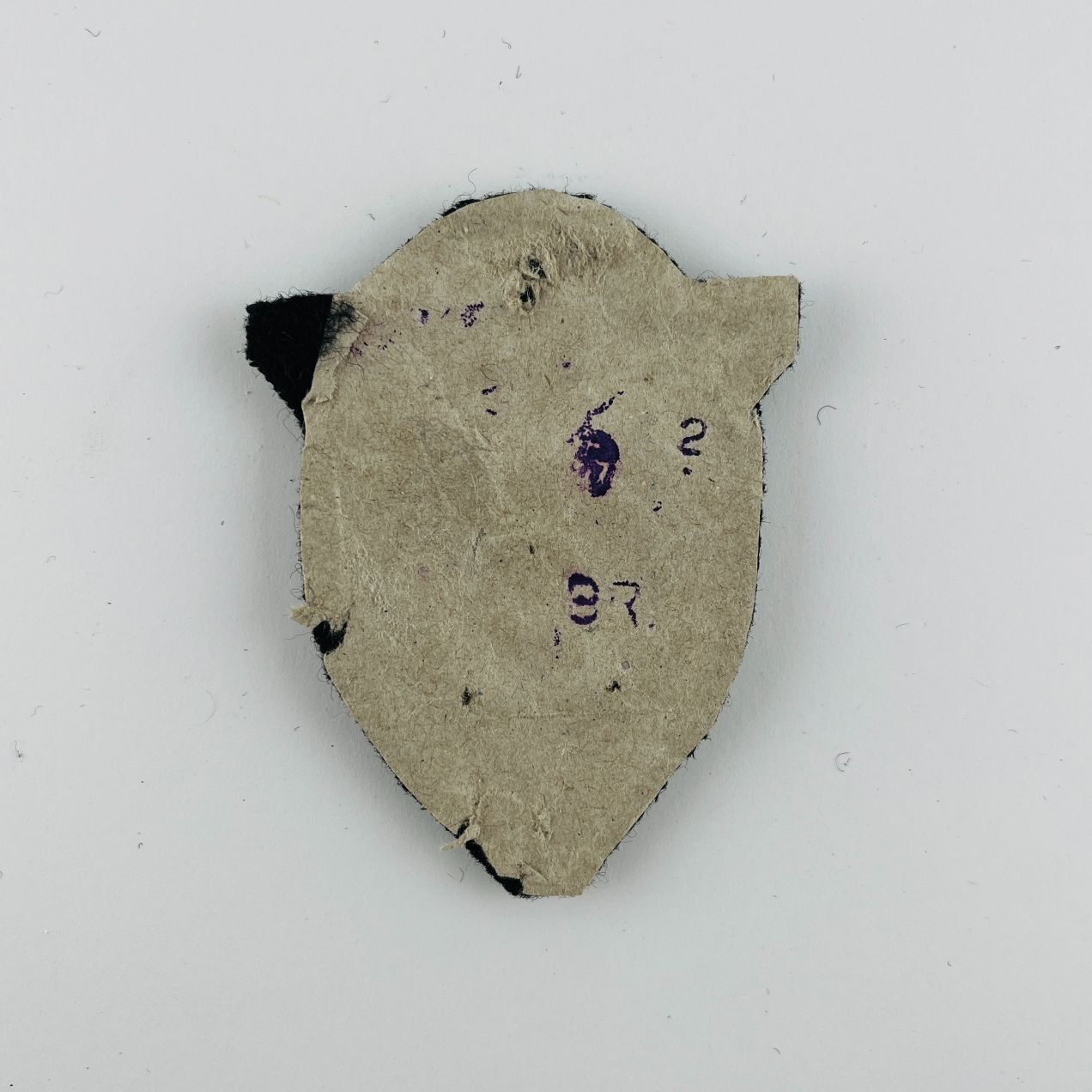 Insignia alemana en aluminio estampado con detalles en esmalte. «Braune Pfingsten. Sternfahrtz Z. Niederschl Saaufmarsch Liegnitz. 1933.» 80 x 60 mm.