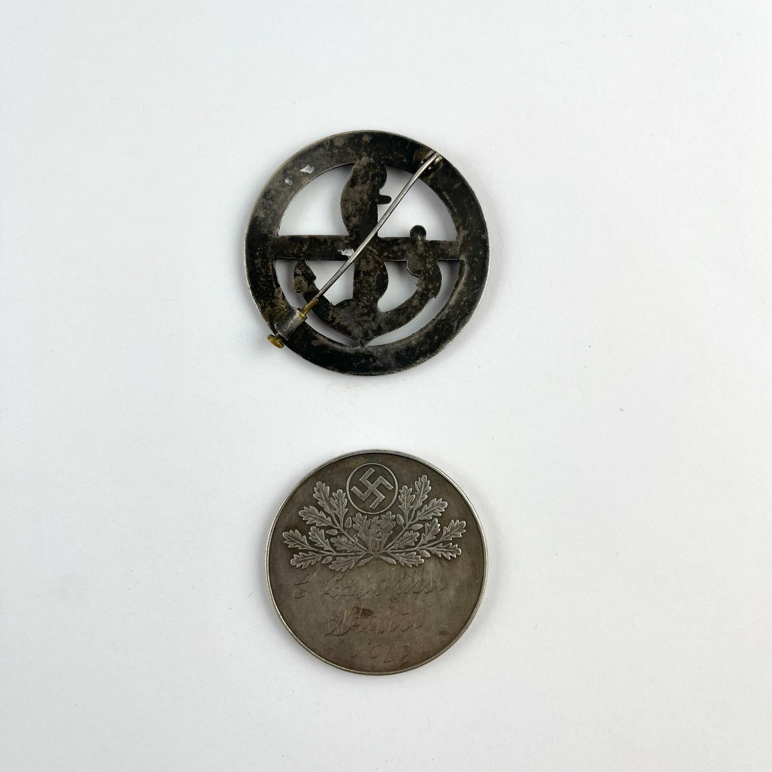 Una insignia y una medalla italianas época Segunda Guerra Mundial otorgadas a las fuerzas especiales Arditi en 1942.