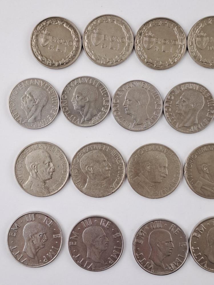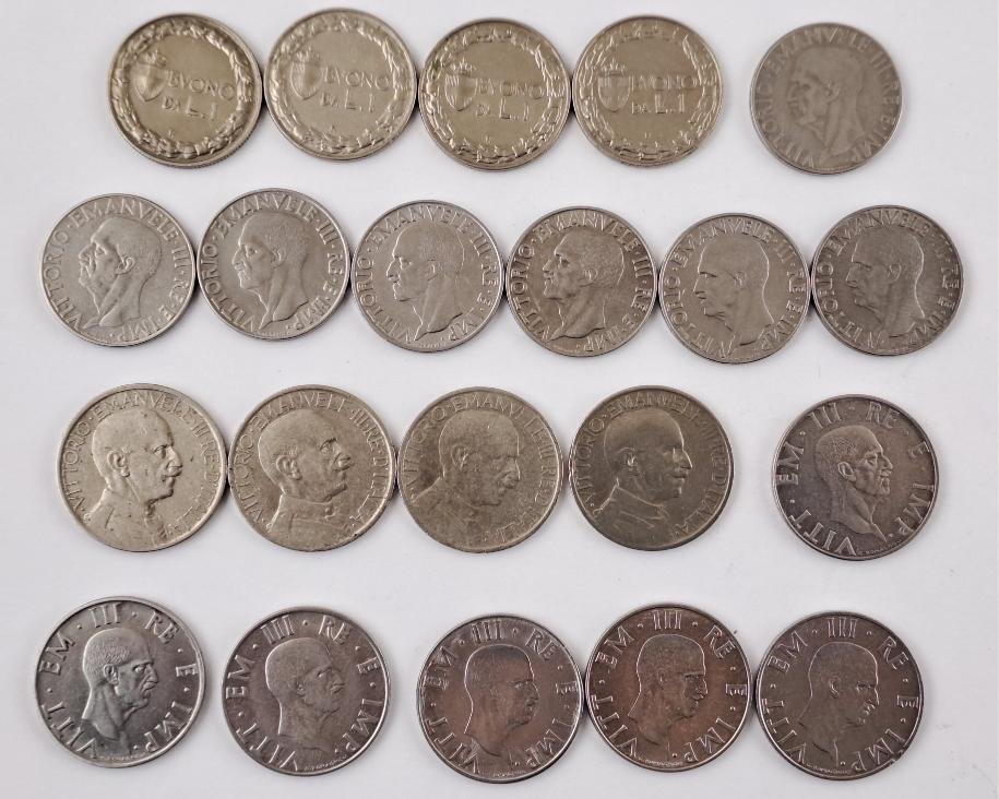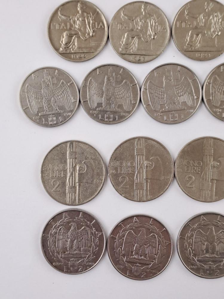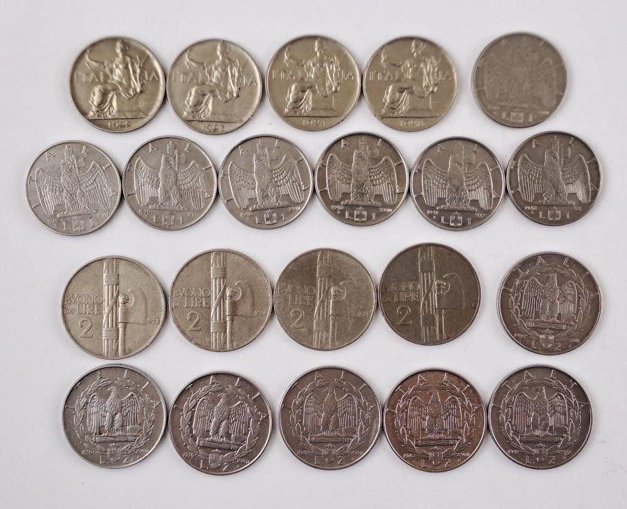 Italia 21 monedas de 1 y 2 lire 1922 a 1942