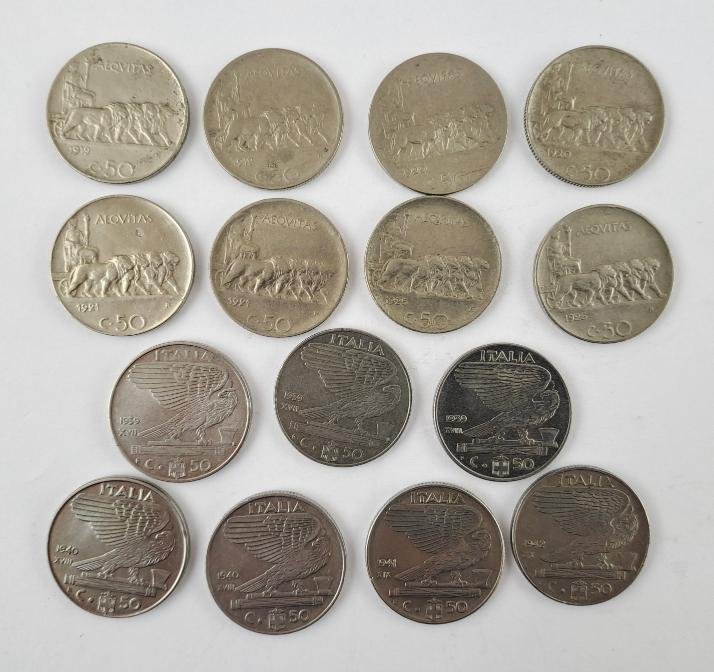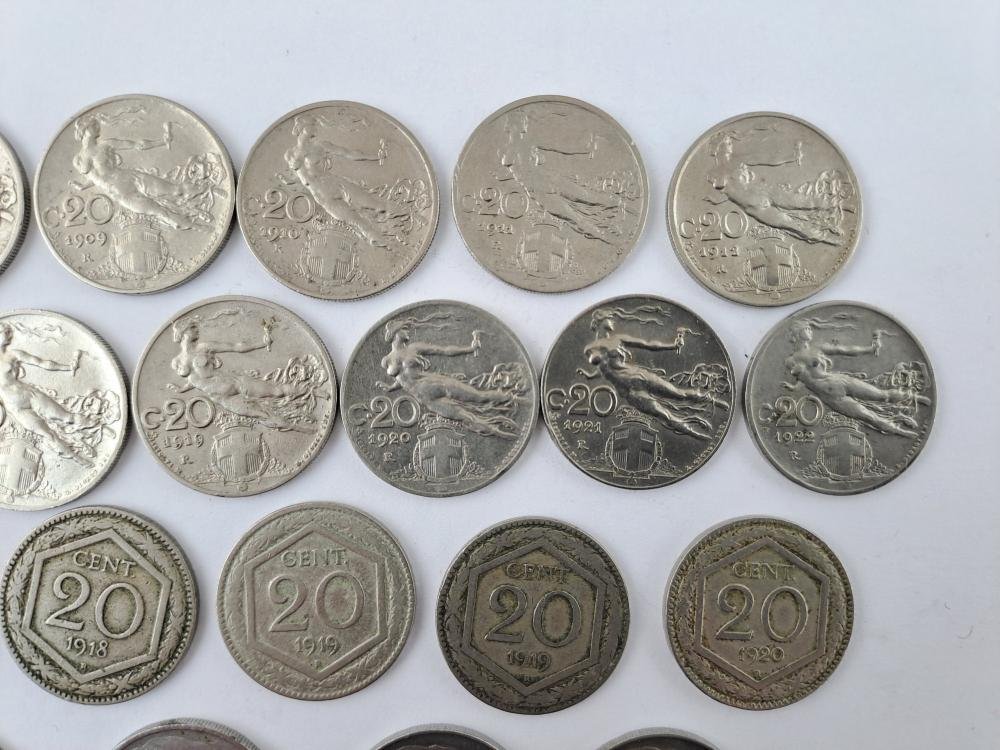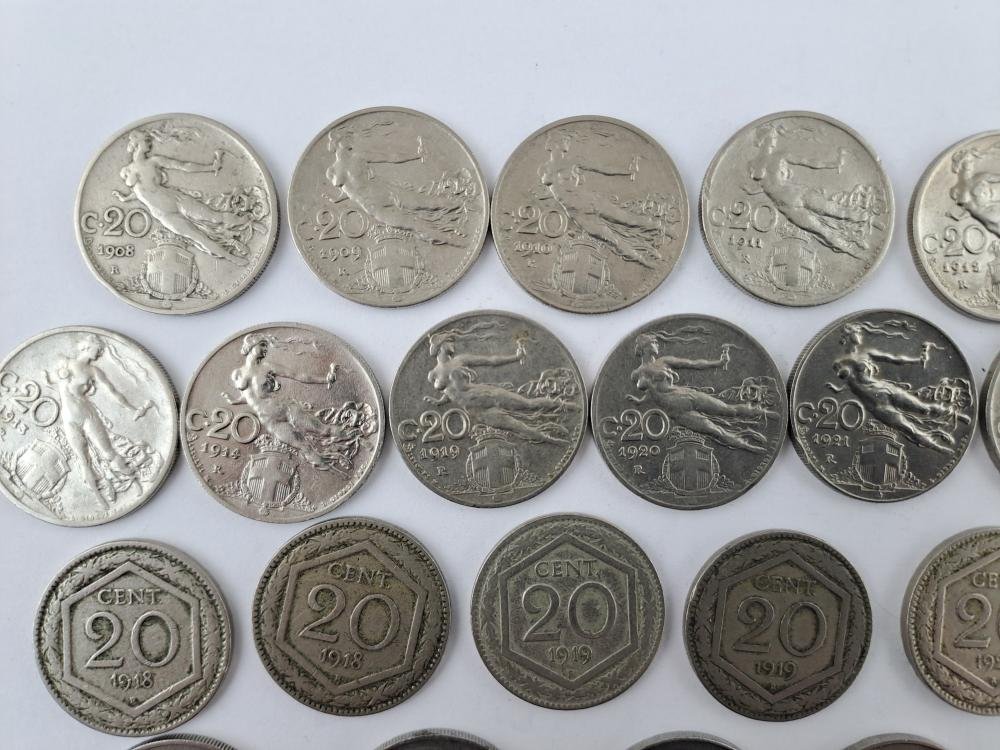 Italia 40 monedas de 20 y 50 centésimi 1908 a 1943