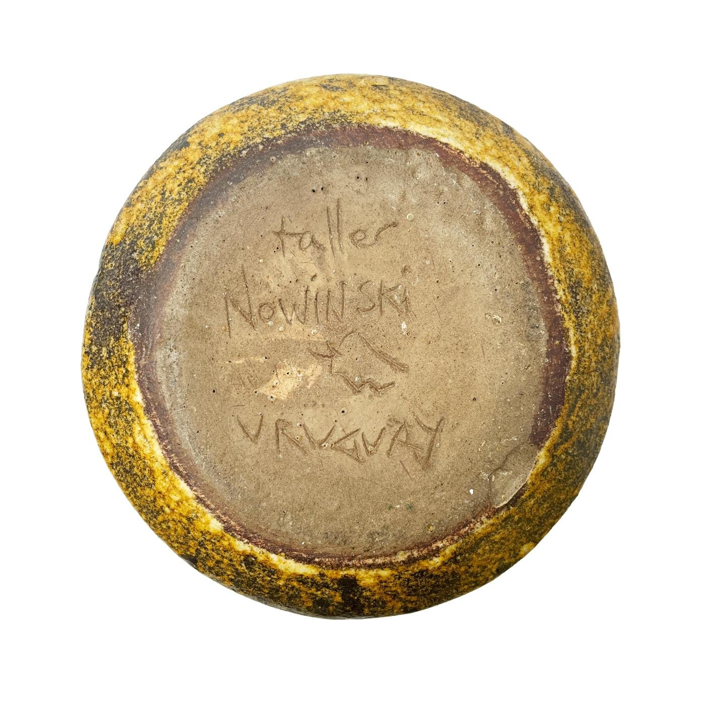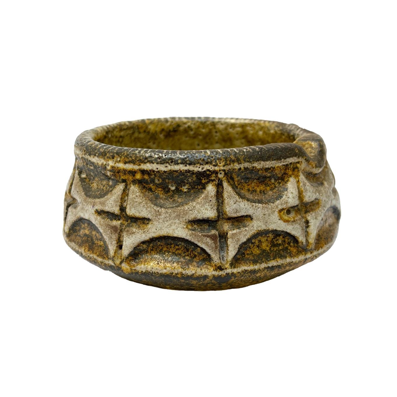 Cenicero en cerámica esmaltada en tonos amarillo y marrón