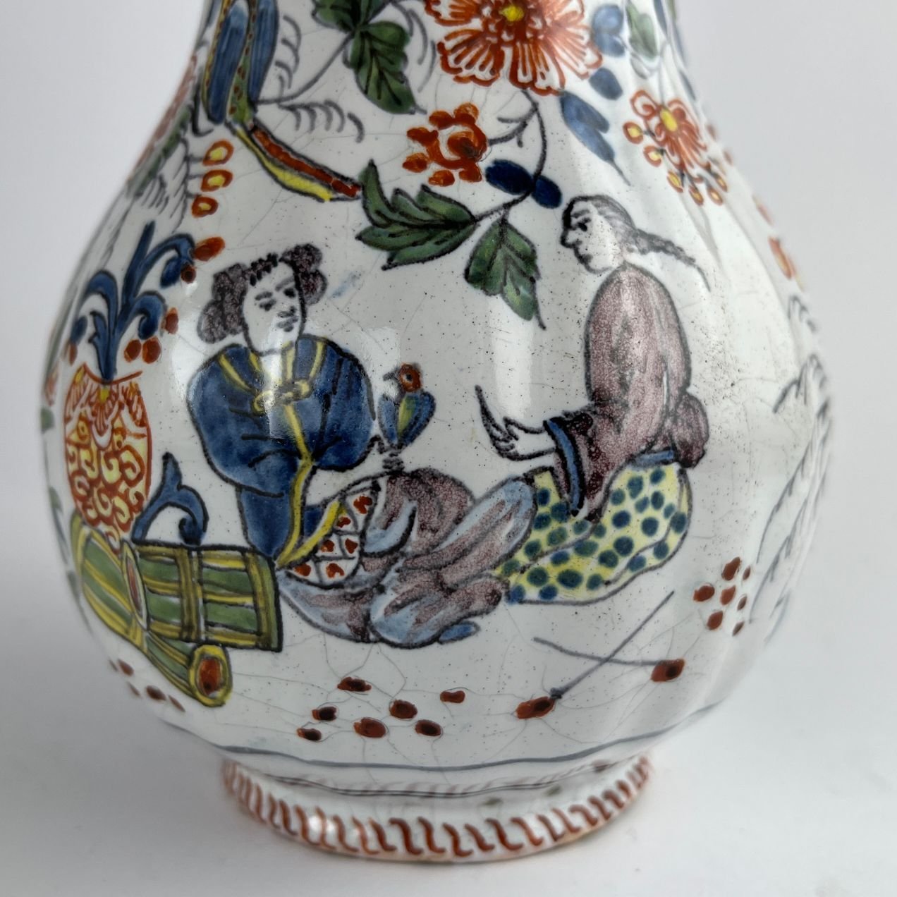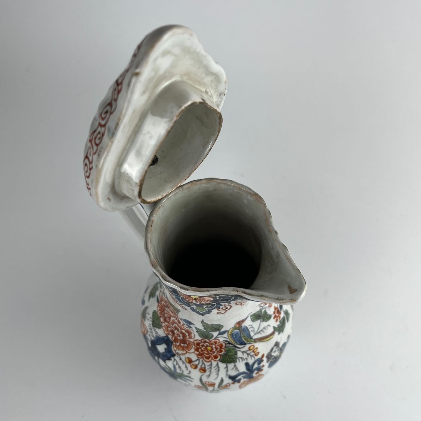 Jarra francesa en porcelana pintada a mano «chinoiserie», con bisagra en peltre. Alto 21 cm.