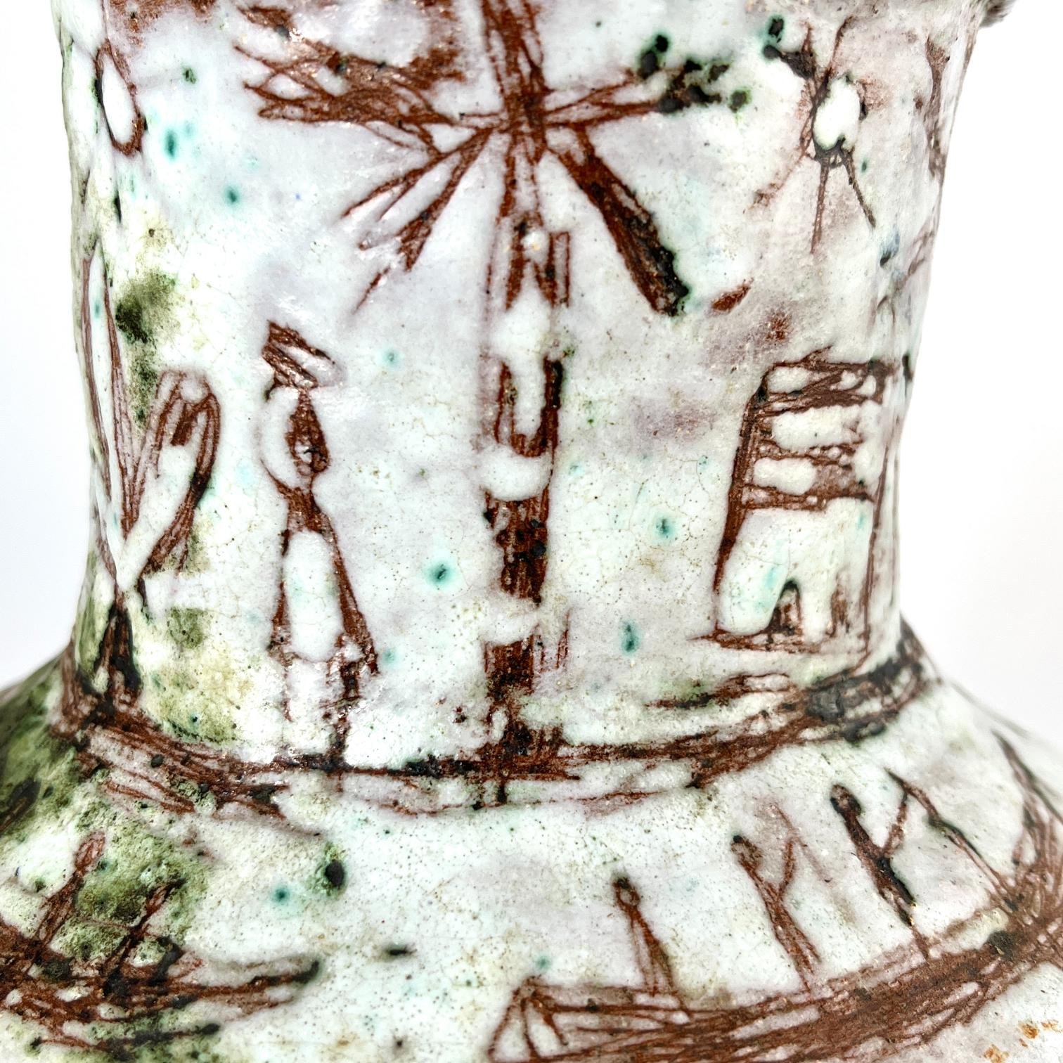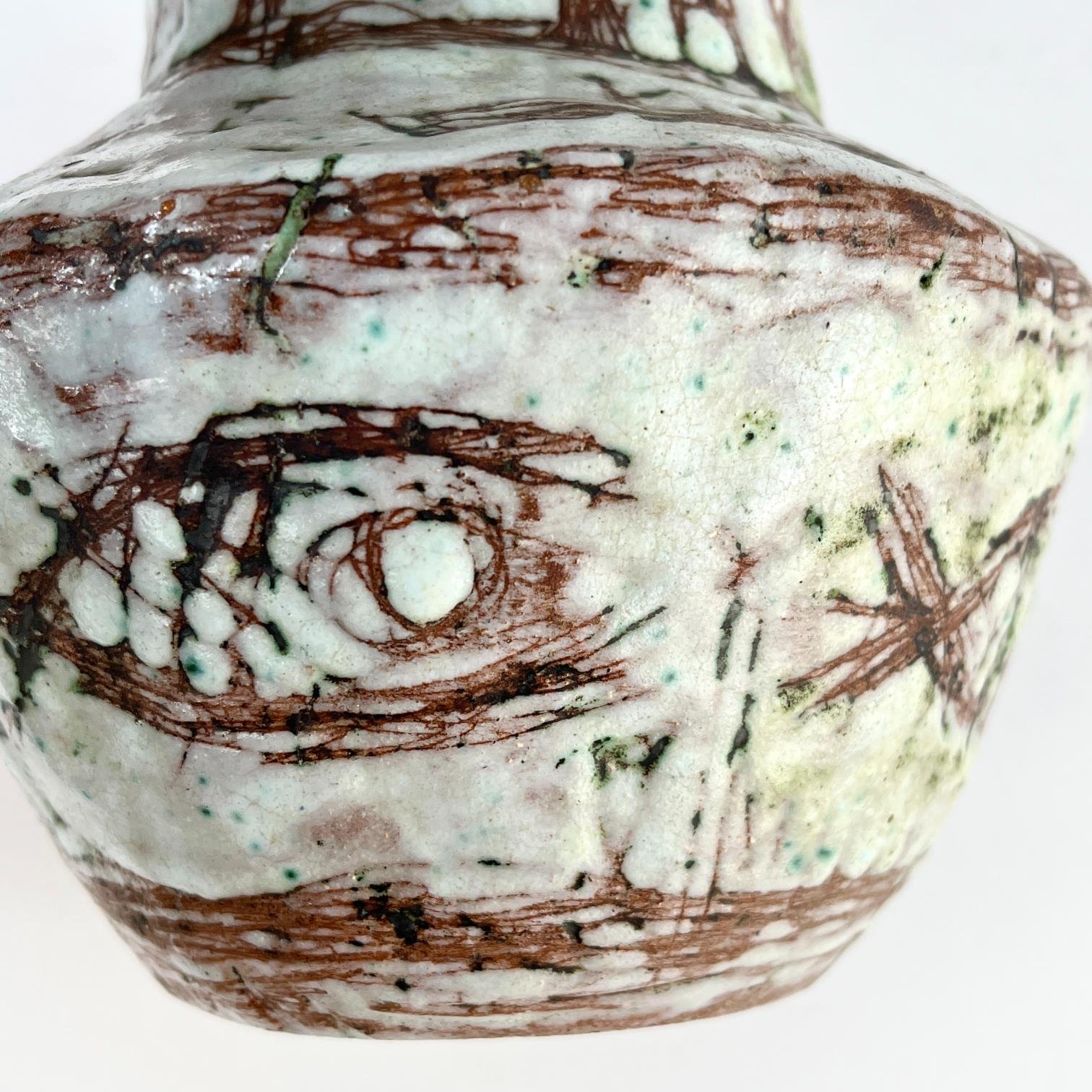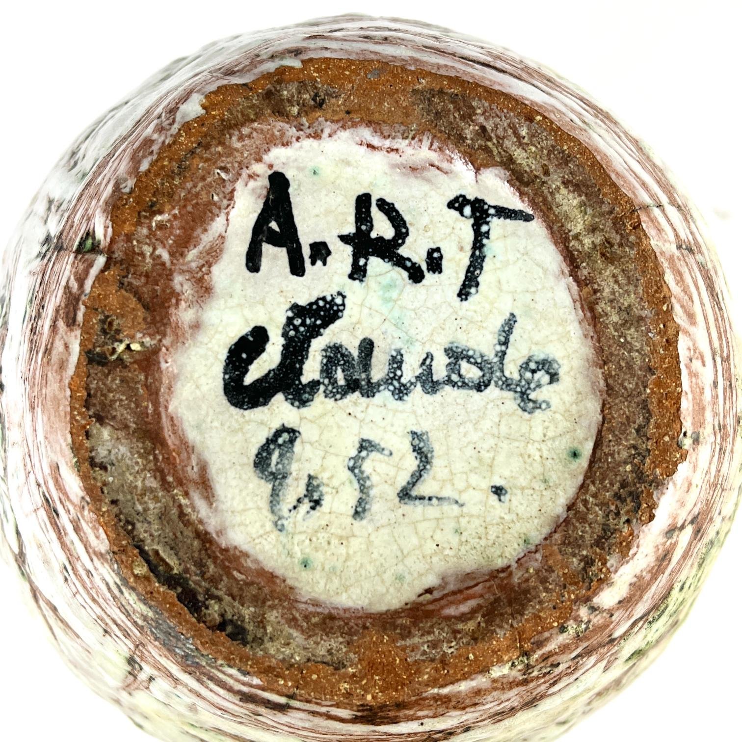 Jarrón en cerámica esmaltada decorada «peces y paisajes». Firmado «Claude» en la base. 19 x 17 cm Presenta pequeña cascadura. Proveniencia: ex colección Jorge Páez Vilaró