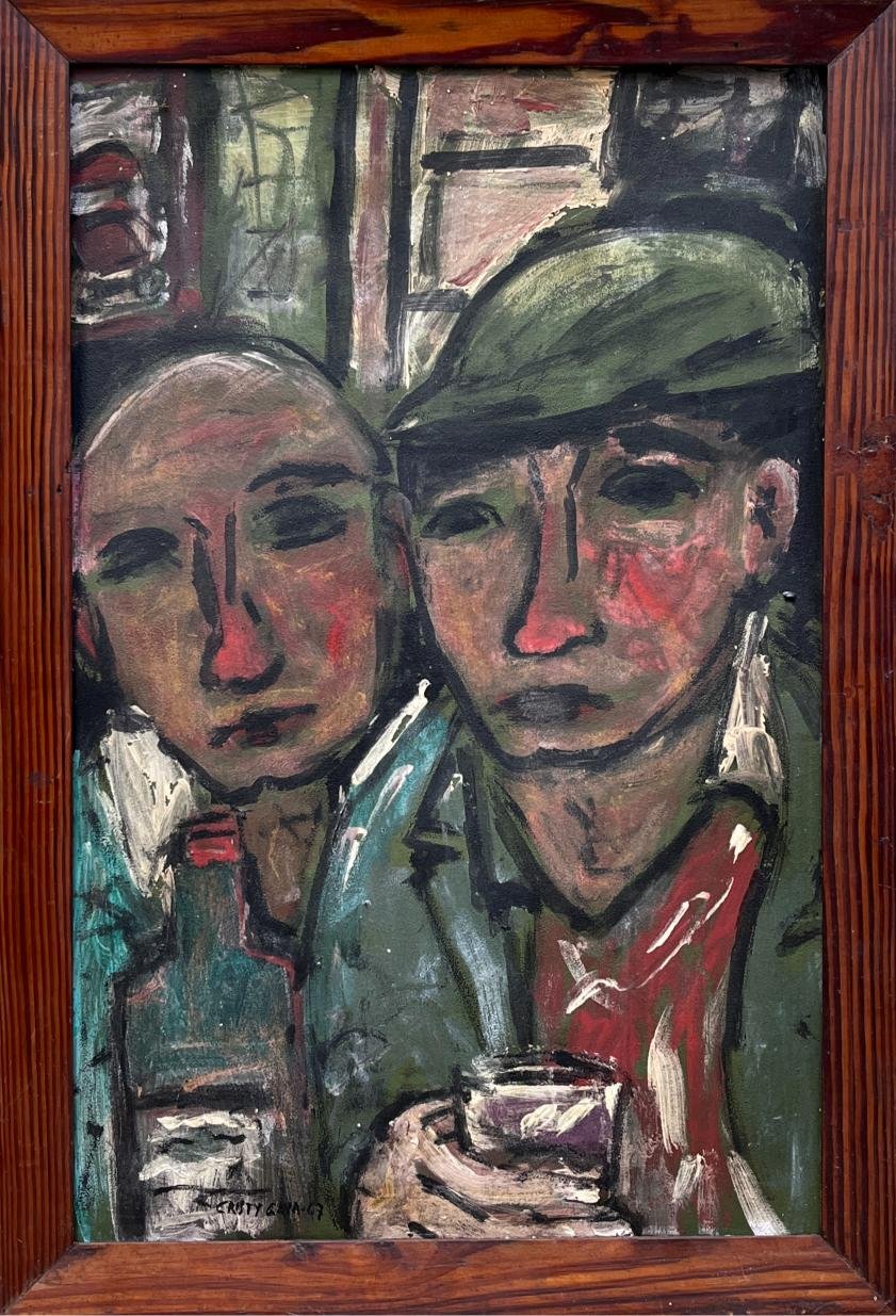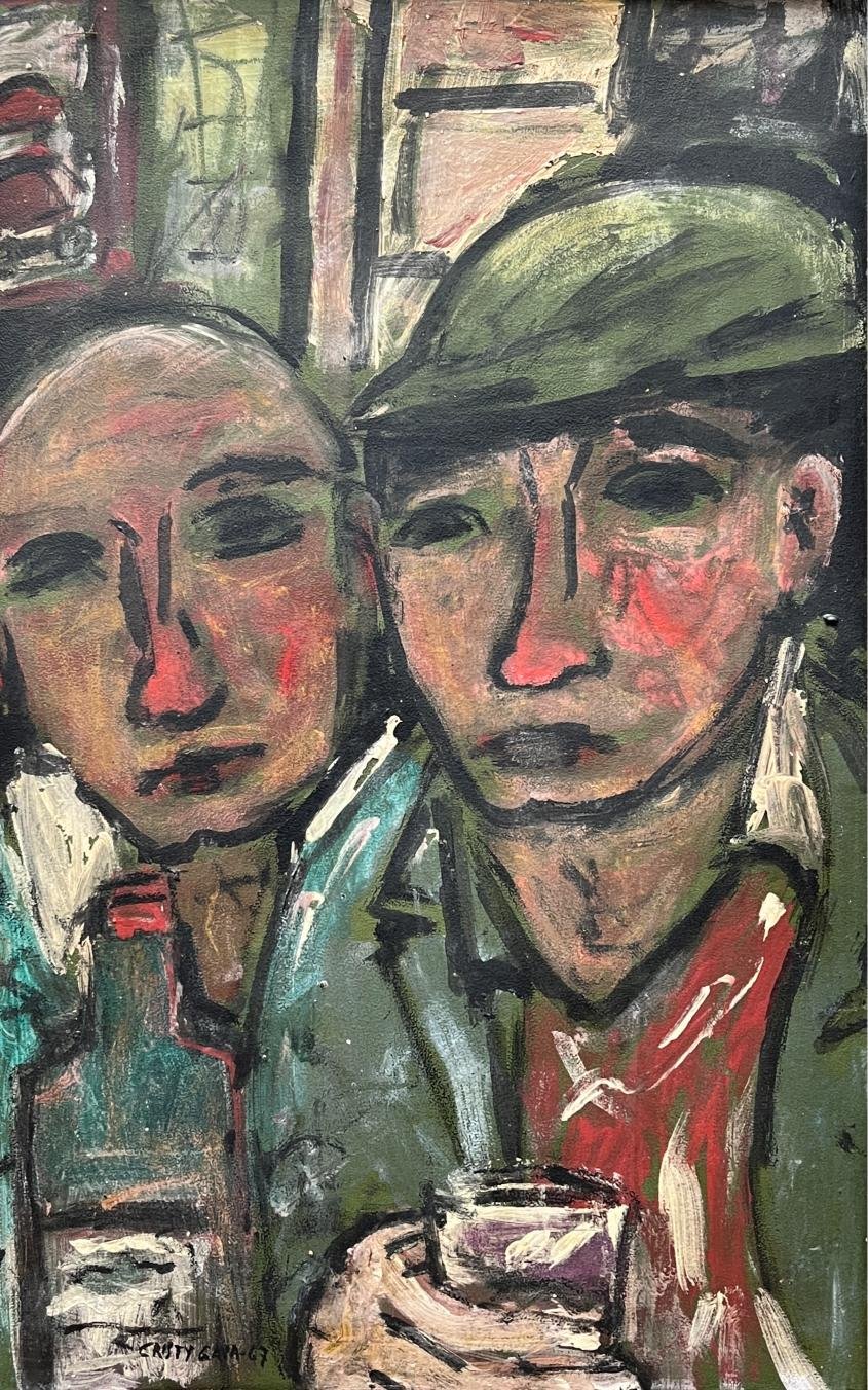 CRISTY GAVA (Escuela uruguaya, 1916-1985) Óleo sobre cartón «Parroquianos» Firmado y fechado «67» abajo a la izquierda 61 x 40 cm