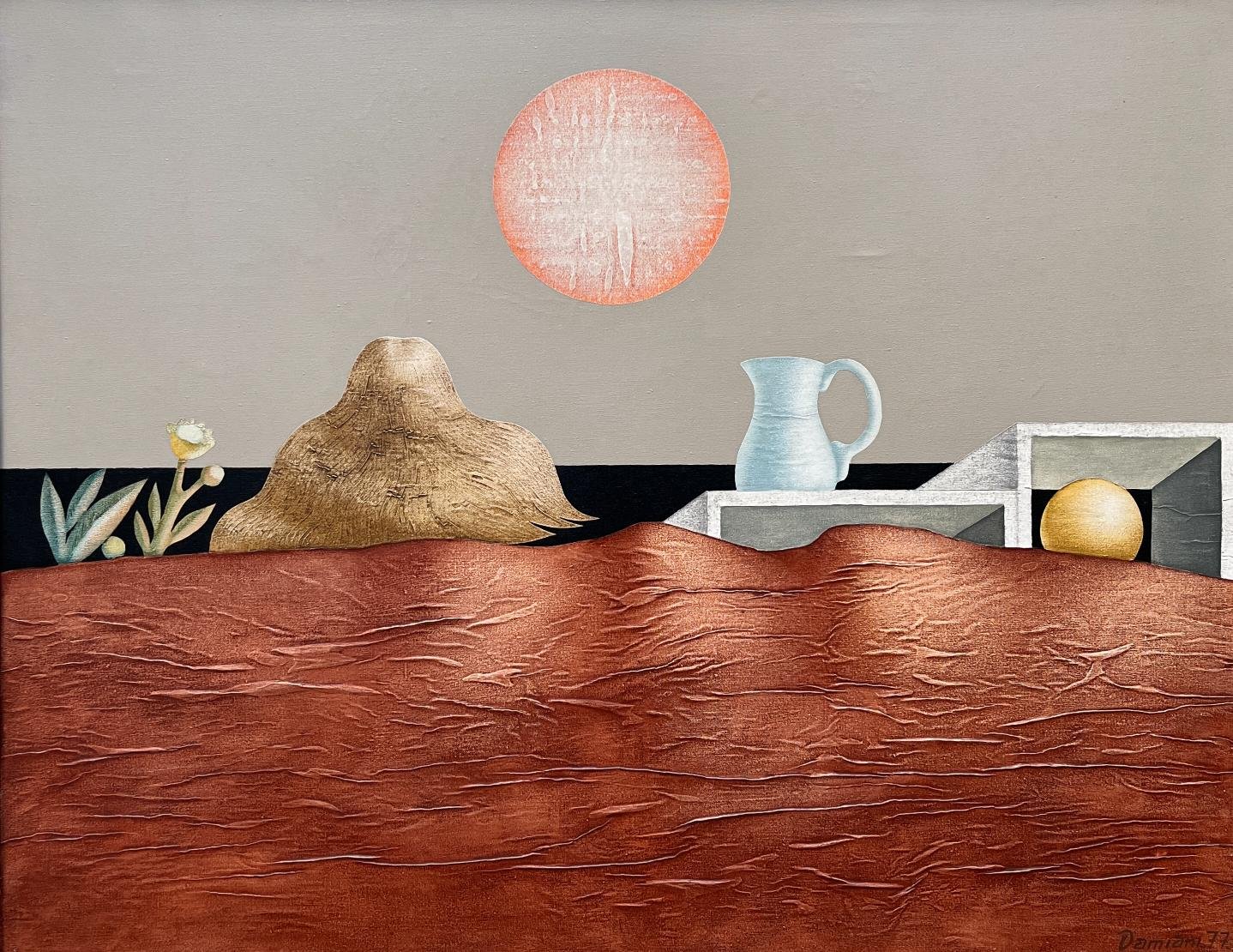 JORGE DAMIANI (Escuela uruguaya, 1931-2017) Acrílico sobre tela «Playa» Firmado y fechado «77» abajo a la derecha 73 x 92 cm