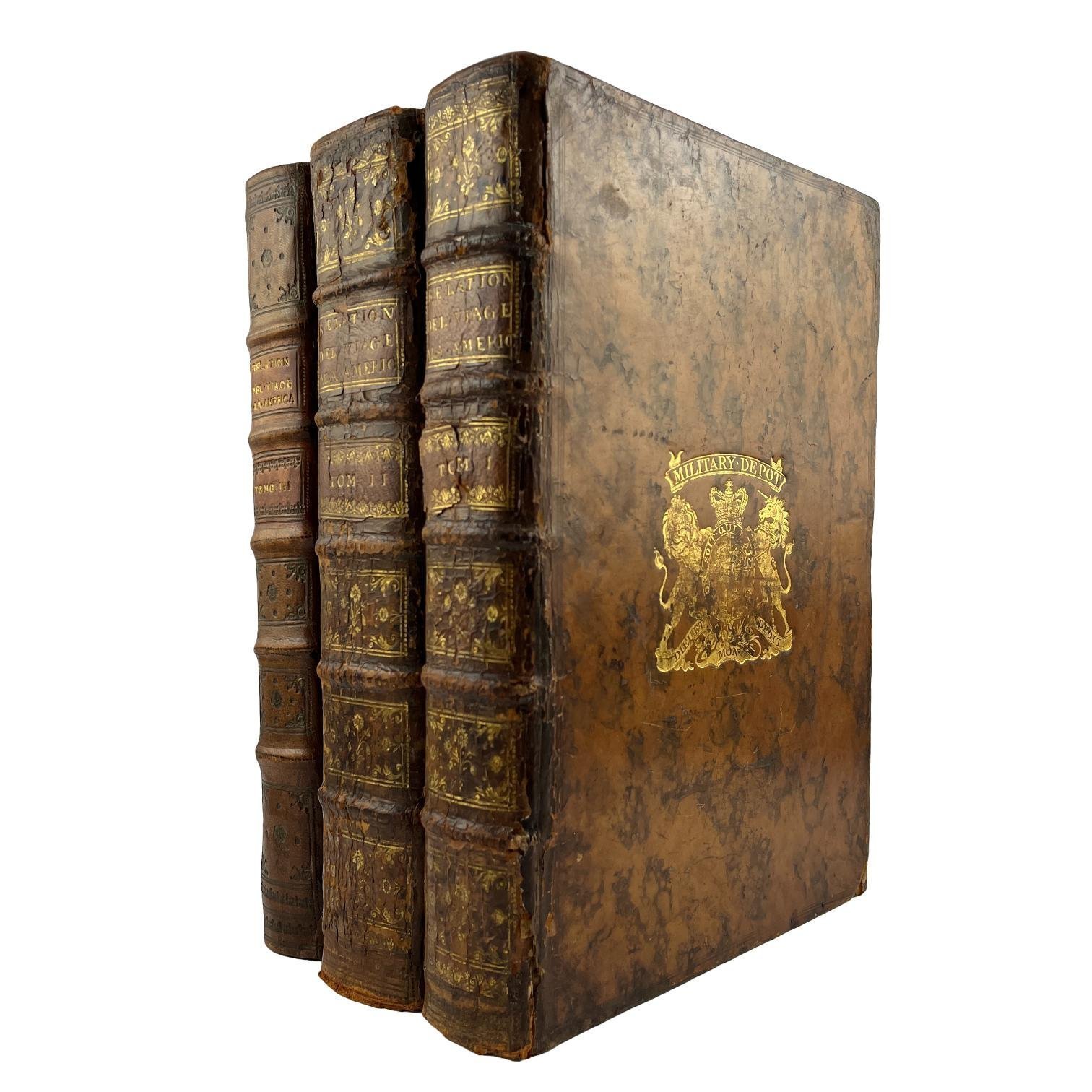 Muy buscada. Obra completa en 3 volúmenes, en 4º (en torno a 29 x 20 cm, salvo el tomo II; 26,3 x 19,3 cm), encuadernados en pleno cuero con títulos dorados, en buen estado. Primera edición.