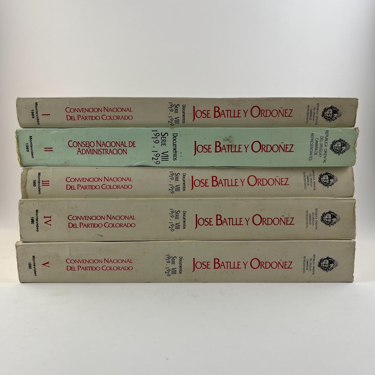 “José Batlle y Ordóñez. Documentos para el estudio de su vida y su obra.” 5 tomos I II III IV V. Cámara de Representantes. Montevideo, 1989 y 1990.