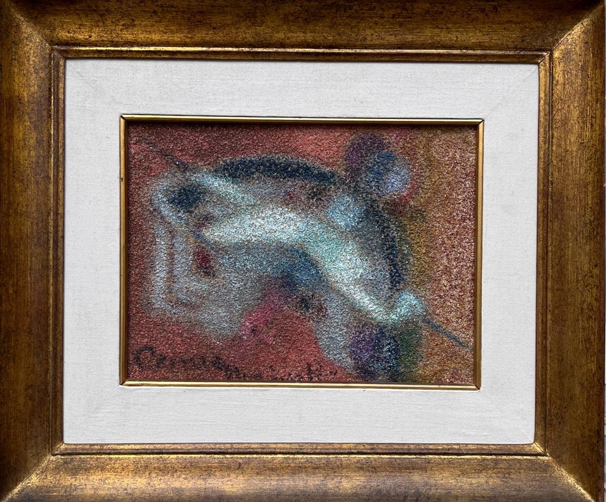 Al dorso certificado por Galería Bruzzone, Montevideo, en etiqueta de papel