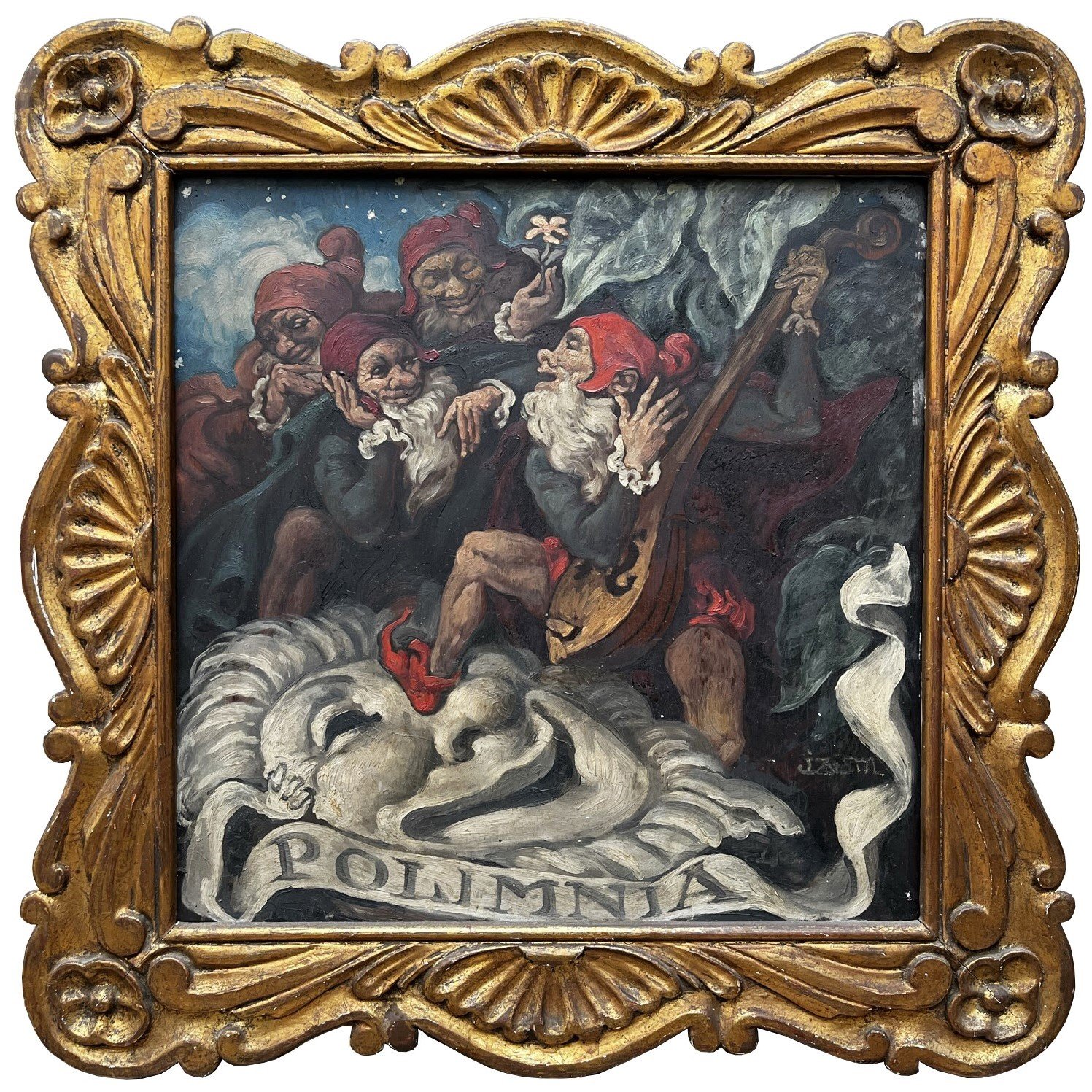 ZORRILLA DE SAN MARTÍN, José Luis (Uruguay, 1891-1975). Óleo sobre tabla. “Polimnia, musa de la poesía sagrada.” Firmado abajo a la derecha. 50 x 50 cm. Presentado en marco de madera tallada y dorada a la hoja realizado por el artista. Medidas con marco: 69 x 69 cm.