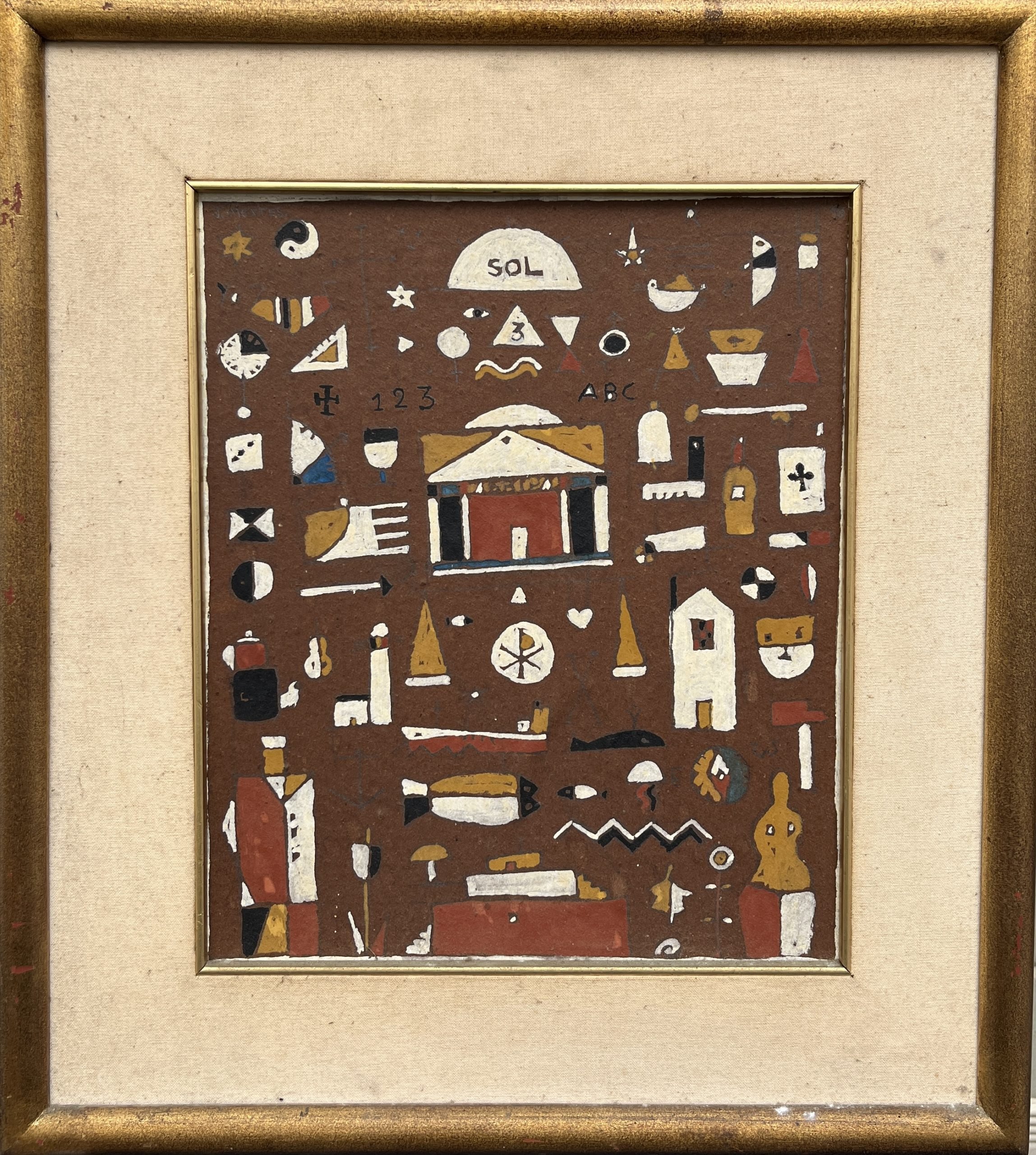 JOSÉ MONTES (Escuela uruguaya, 1929-2001) Óleo sobre fibra «Constructivo sol» Firmado arriba a la izquierda 31 x 26 cm