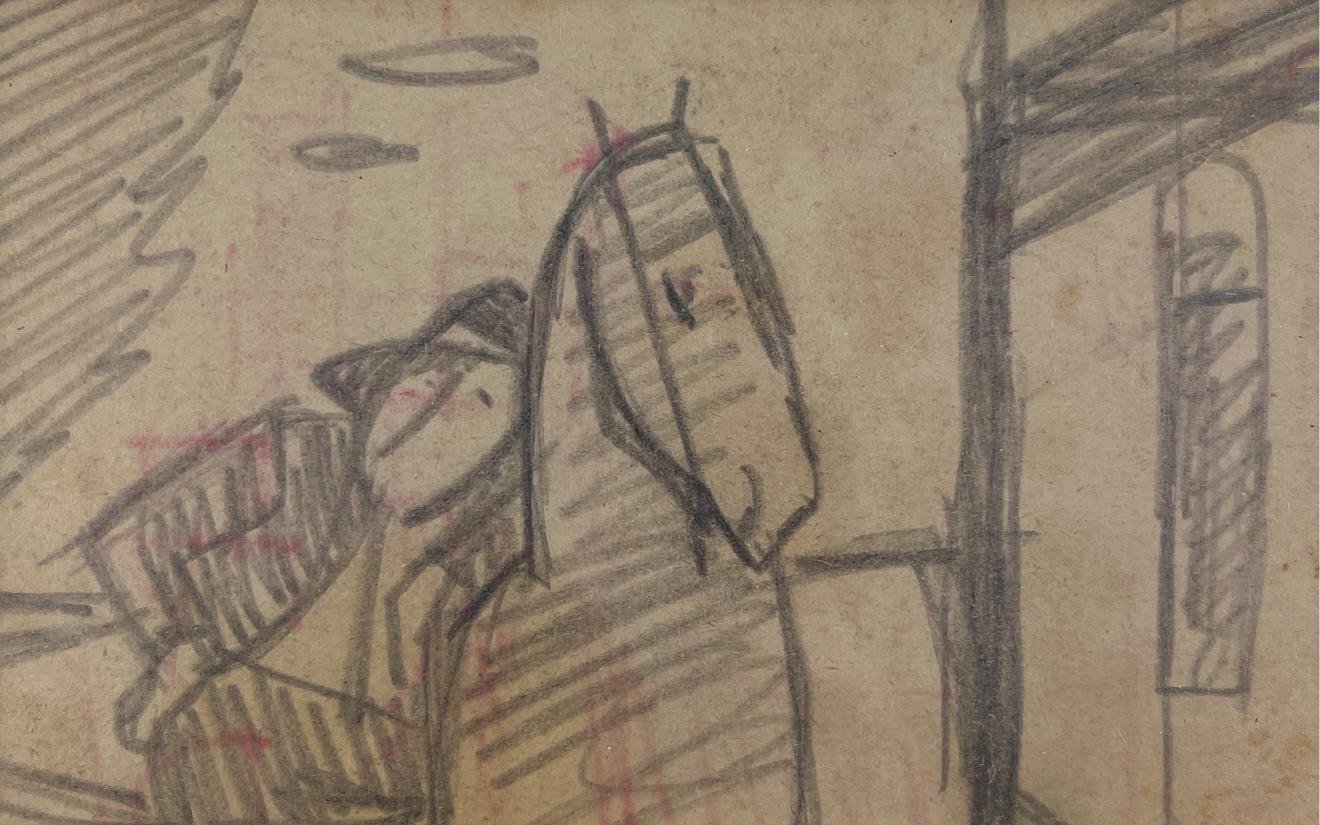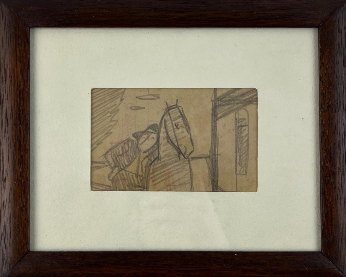 JUAN STORM (Escuela uruguaya, 1927-1995) Lápiz sobre papel «Gaucho y su caballo» 8 x 13 cm