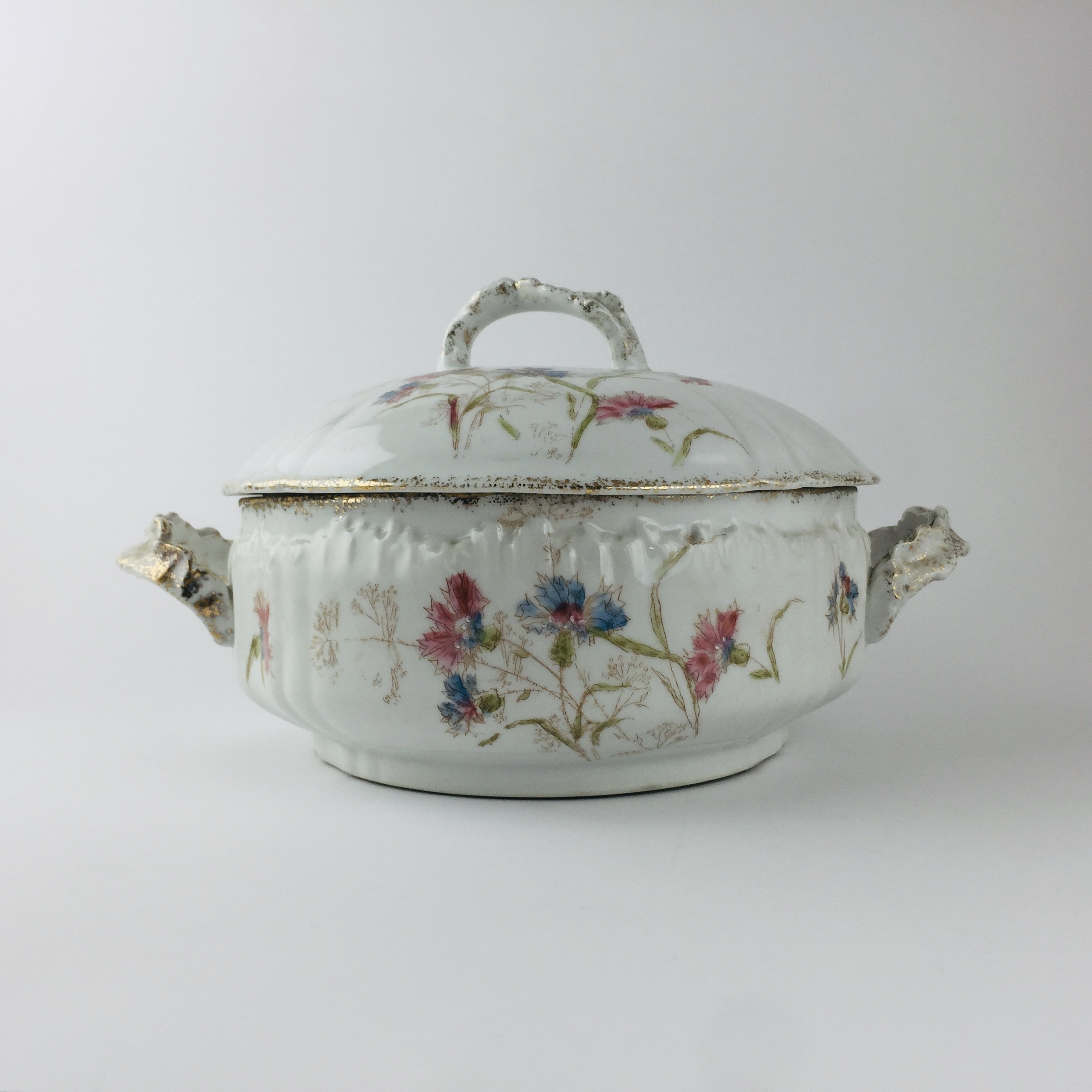Juego de mesa en porcelana francesa Limoges blanca decorada «flores» con detalles en oro. Compuesto por
