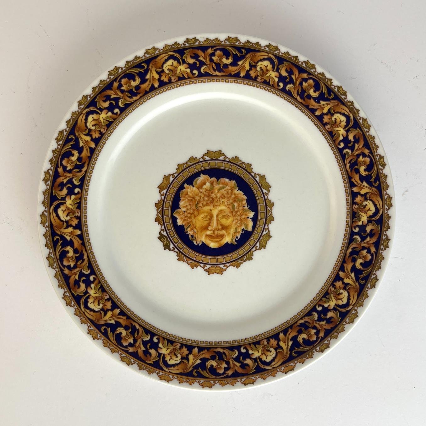 Juego de seis platos para lunch y una fuente redonda en porcelana Bacchus de Limoges decorada «diseño Versace».