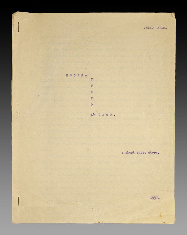 “Entre algunas de las piezas más destacadas -seguimos con el juicio de Aquilanti- se encuentra por ejemplo el cuento inédito «Cumpleaños», en siete carillas mecanoscritas, fechado en Bolívar en noviembre de 1937 y firmado con el seudónimo de «Julio Denis». Cabe mencionar que su primer cuento publicado, «Llama el teléfono, Delia», aparece recién cuatro años después, en 1941, también firmado como Julio Denis. El personaje de este cuento inédito describe su cumpleaños veintitrés en la soledad de un hotel de provincia. La misma edad que el autor había alcanzado sólo tres meses antes de fechar el cuento. También el nombre del personaje, «Denny», alude a su propio seudónimo, «Denis», y es entonces obvia la referencia autobiográfica.”