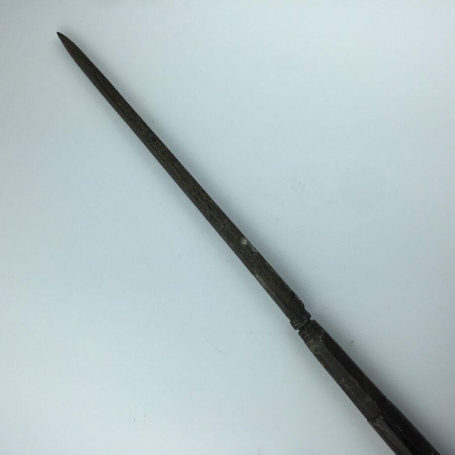 Lanza realizada con hoja de bayoneta y hierro forjado. Asta en madera. Largo total 206 cm.