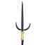 Lanza criolla con medialuna en hierro forjado. Asta en madera. Acompañado de banderola nacionalista en seda, averiada. Alto 260.