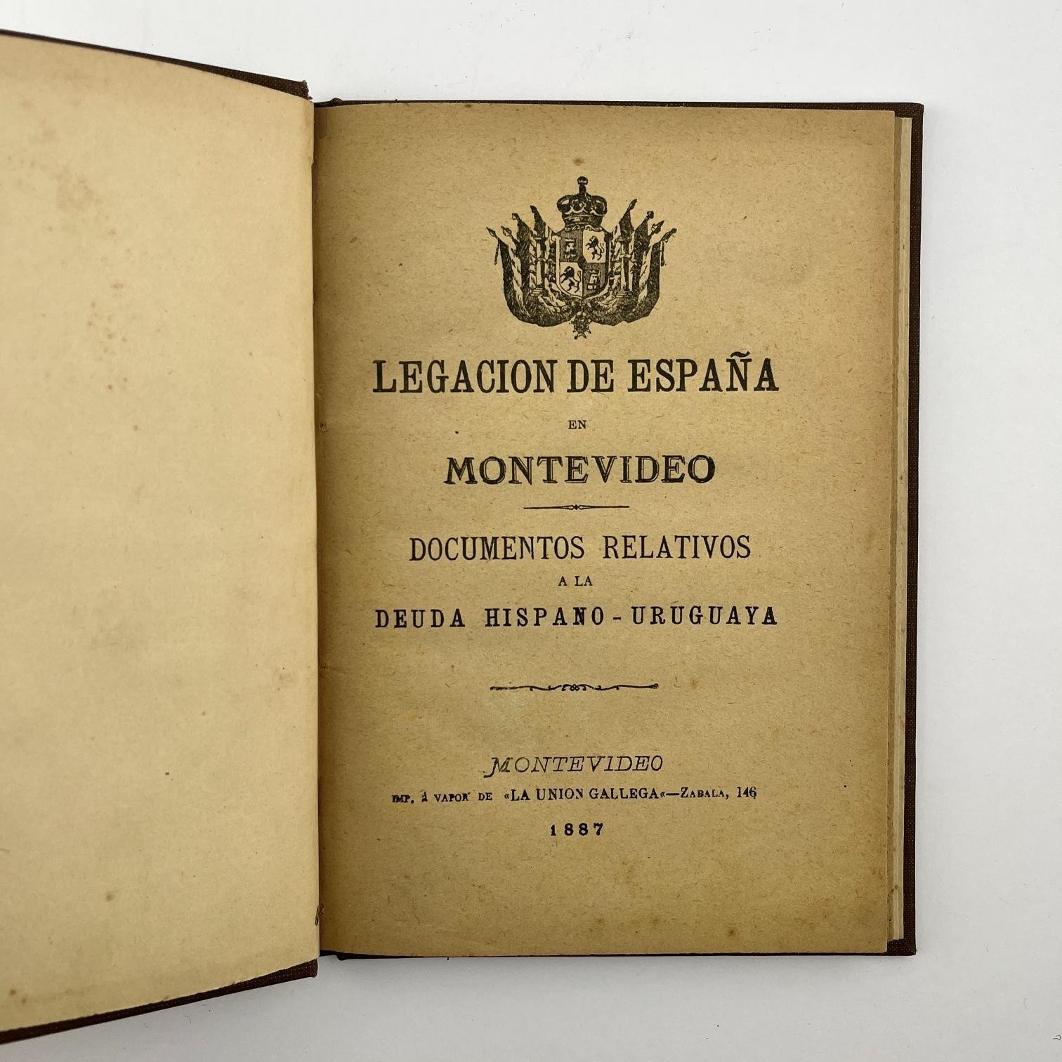 Documentos relativos a la deuda Hispano-Uruguaya. Montevideo. Imp. a vapor de “La Unión Gallega”. 1887.