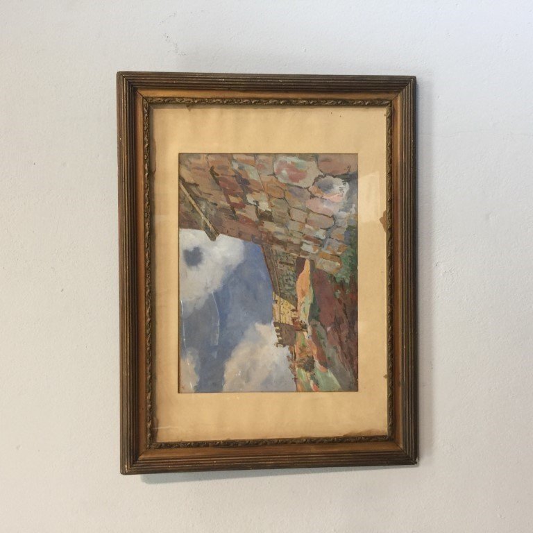 MATTHIS, Léonie (escuela rioplatense, 1883-1952). Acuarela sobre cartón. «Fortaleza de Santa Teresa, Rocha.» Firmado abajo a la derecha.