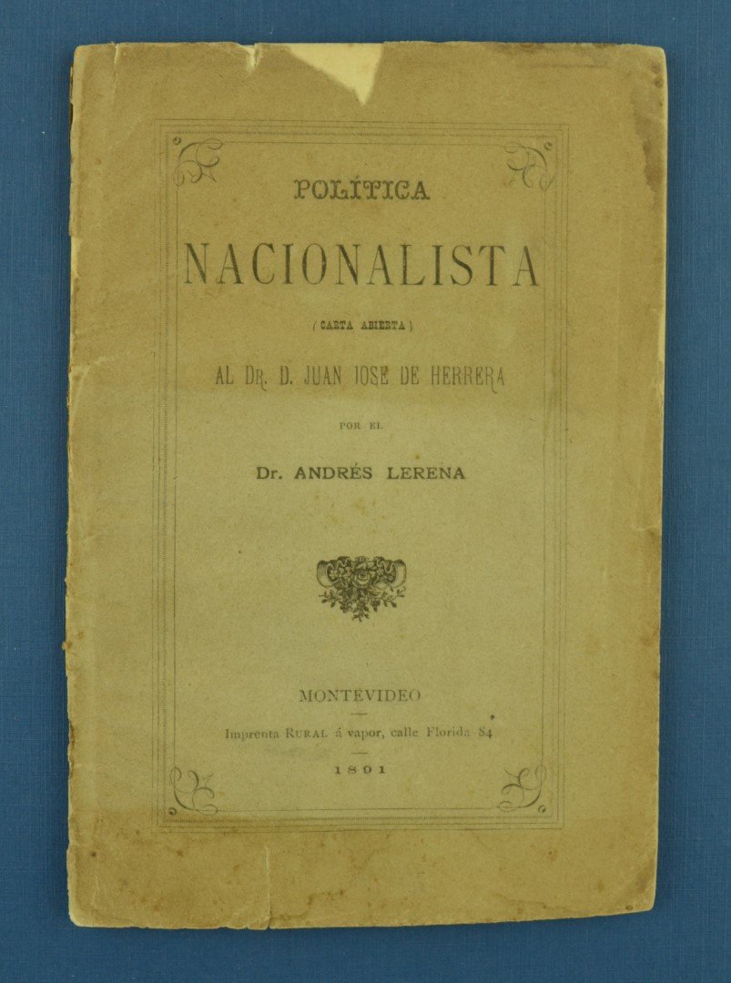 LERENA, Andrés: Política Nacionalista (Carta abierta) al Dr. D. Juan José De Herrera. Montevideo, Imprenta Rural. 1891.