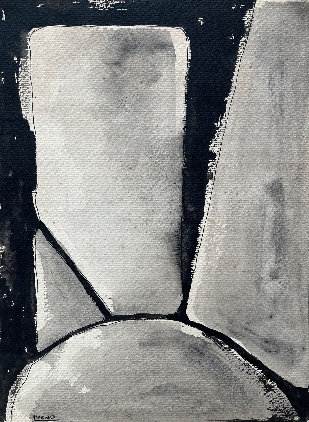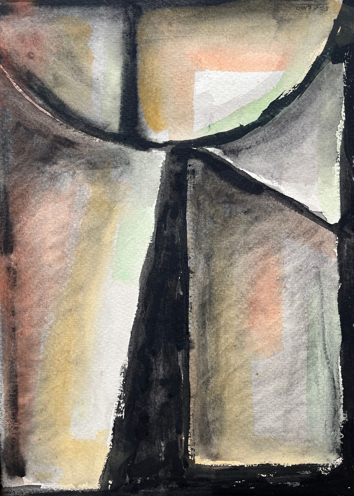 LINCOLN PRESNO (1917-1991) Acuarela sobre papel «Formas con fondo negro» Firmado abajo a la izquierda 42 x 31 cm