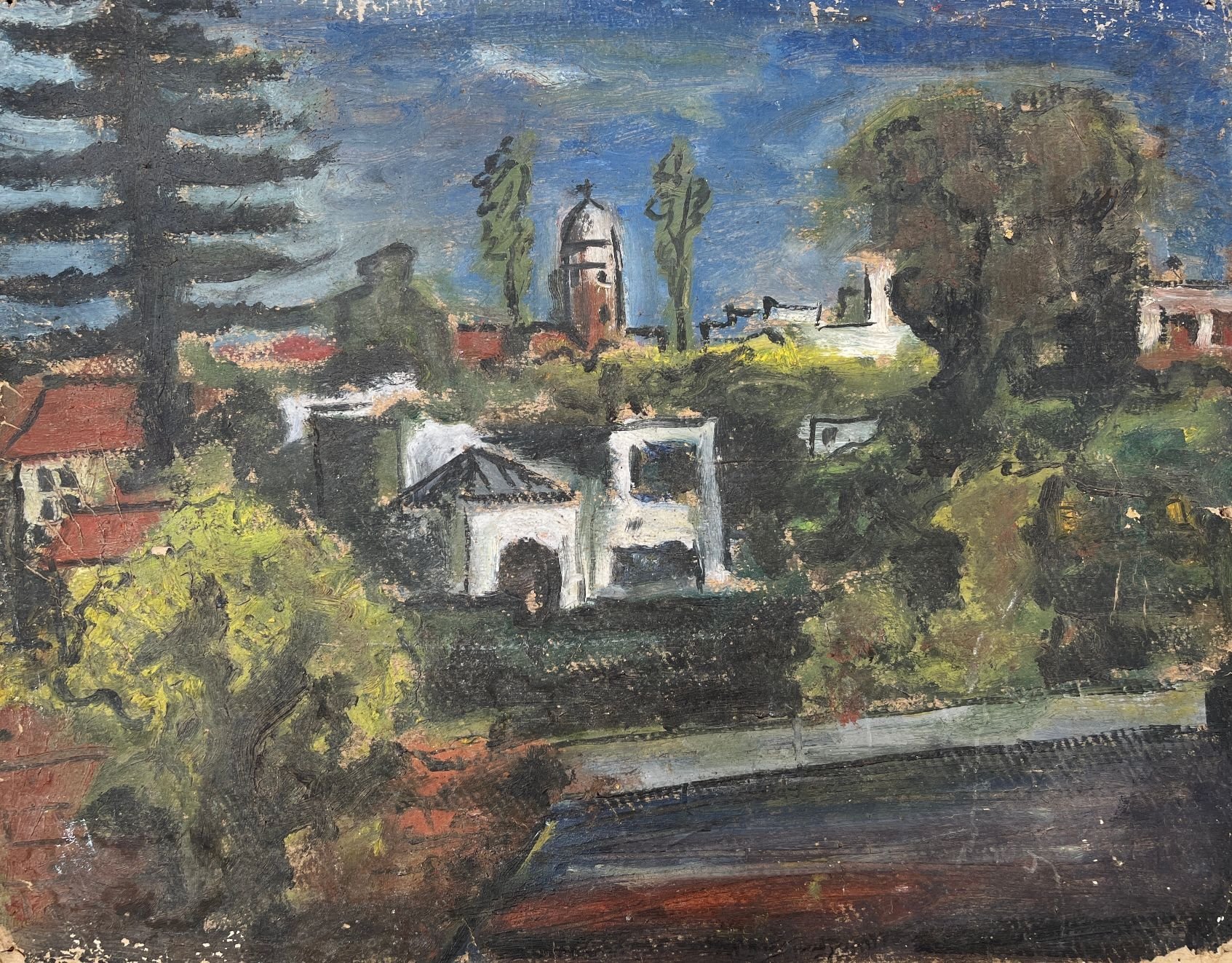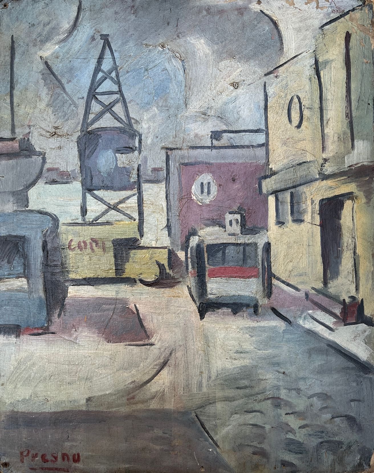 LINCOLN PRESNO (1917-1991) «Puerto constructivo» Óleo sobre cartón Firmado abajo a la izquierda 50 x 39.5 cm