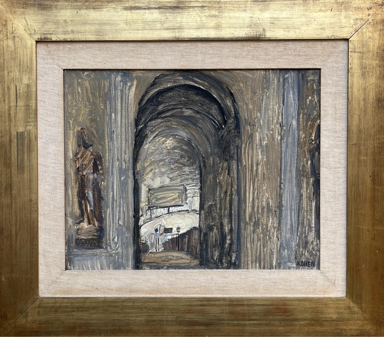 LINDA KOHEN (Escuela uruguaya, 1924) Óleo sobre cartón «Galería» Firmado abajo a la derecha 39,5 x 49 cm
