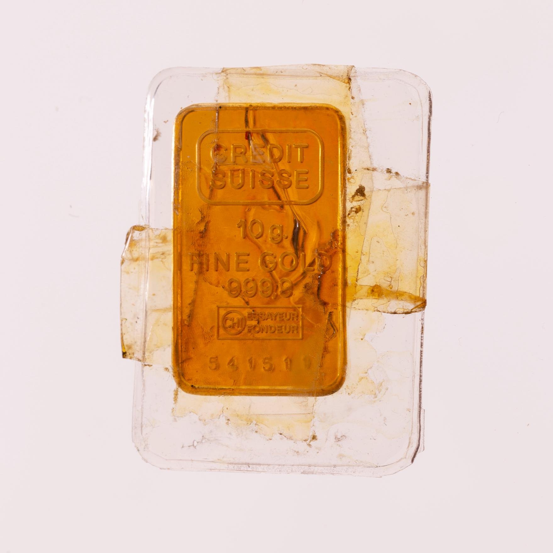 Lingote en oro fino del Credit Suisse. Peso 10 gr. No. 541511. Con certificado.