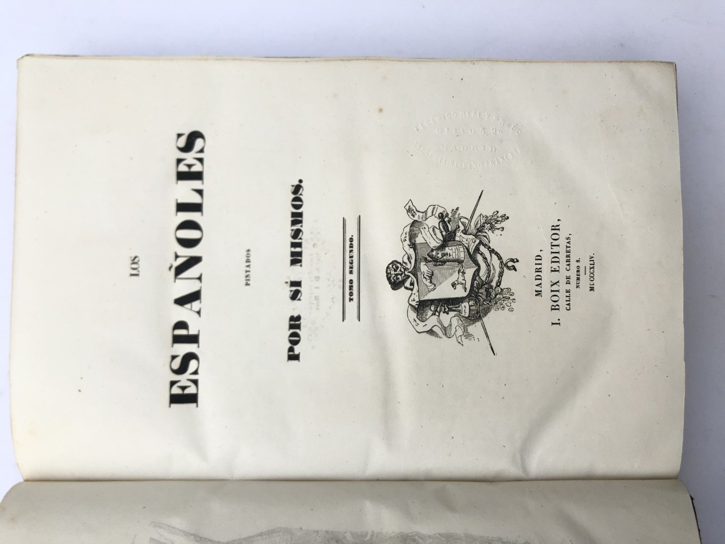 Los españoles pintados por sí mismos. Madrid, I. Boix editor. 1843. Tomo uno. Con ilustraciones. Encuadernación con lomo de cuero.