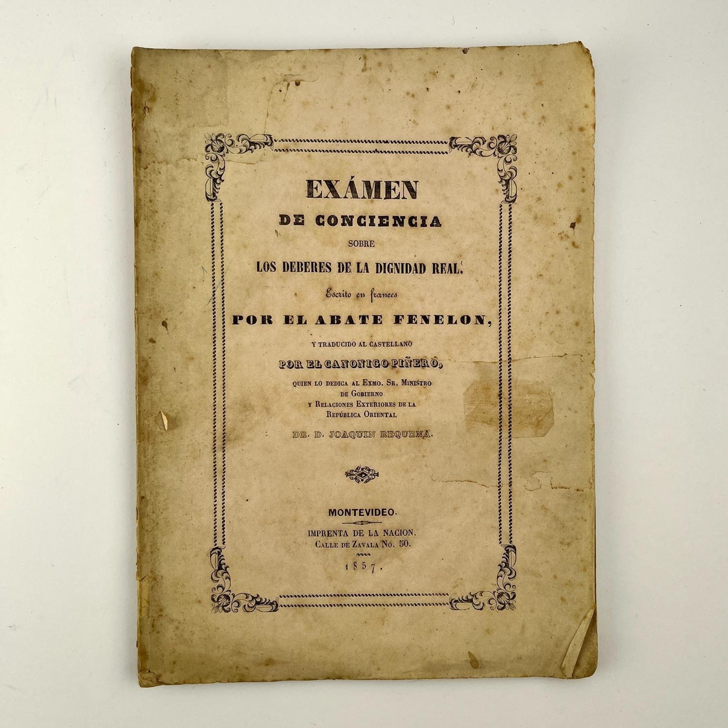 FENELON (ABATE): Exámen de conciencia sobre los deberes de la dignidad real. Montevideo. Imprenta de La Nación. 1857.