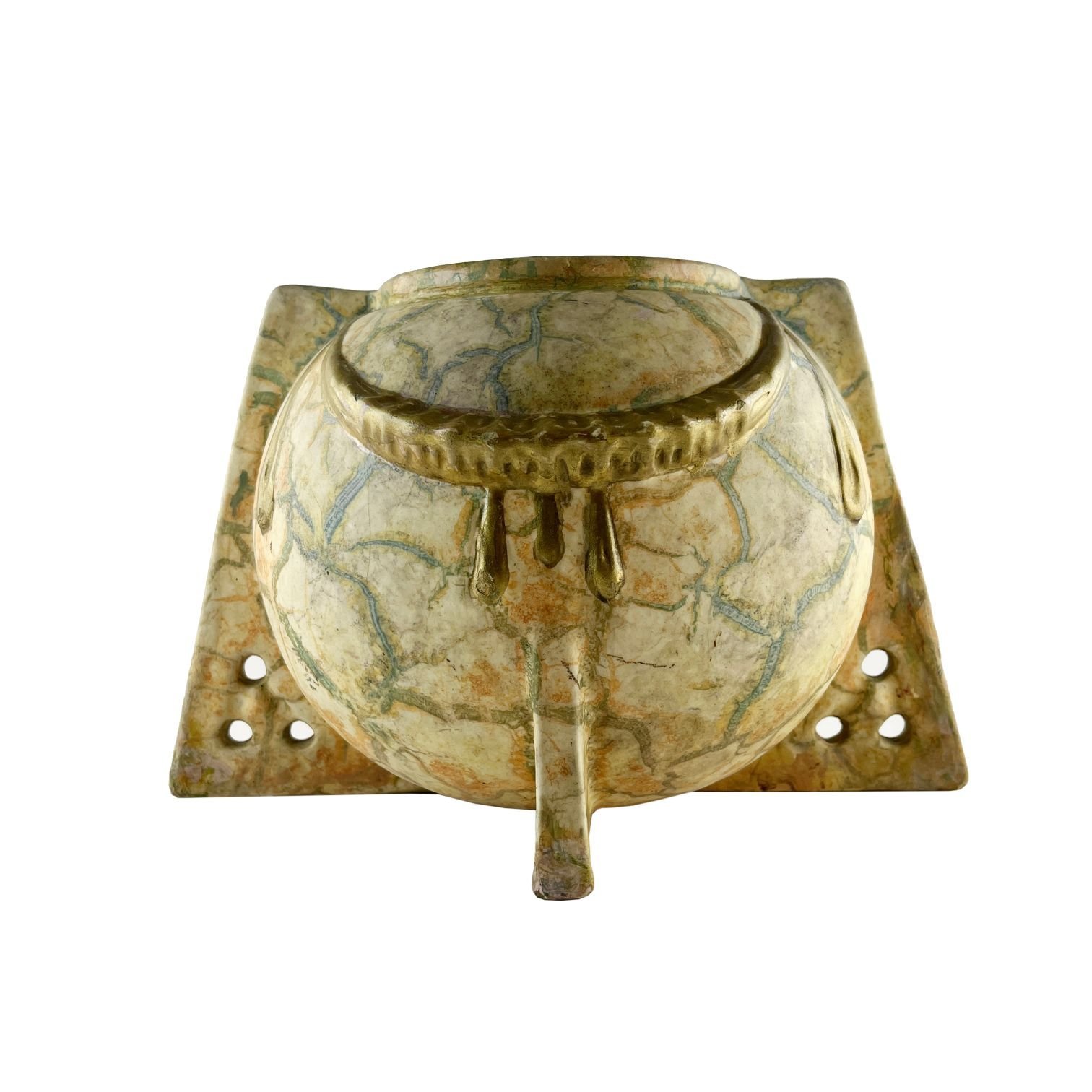 Macetero austríaco art nouveau en faiance policromada con destaques en dorado. 29 x 20 cm.
