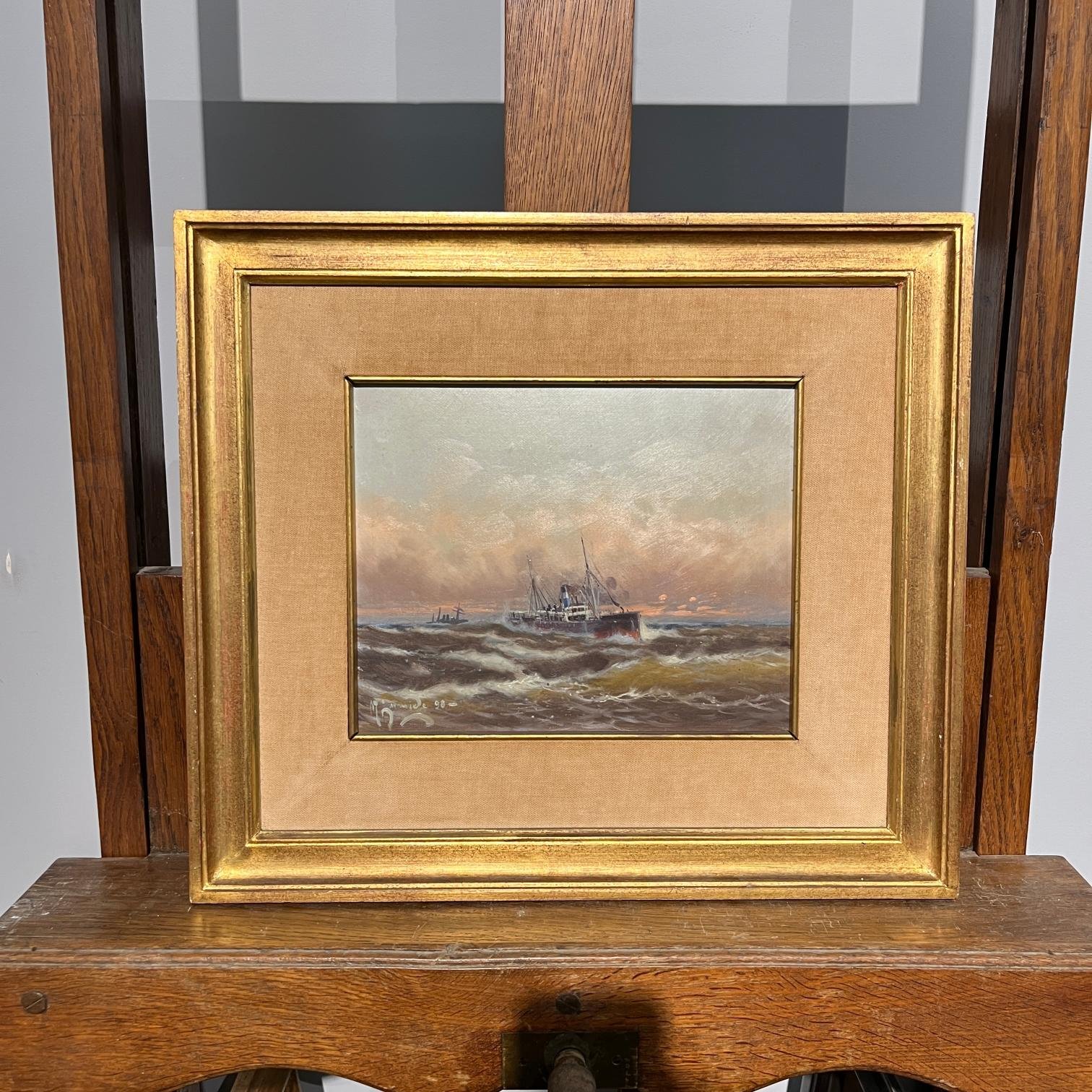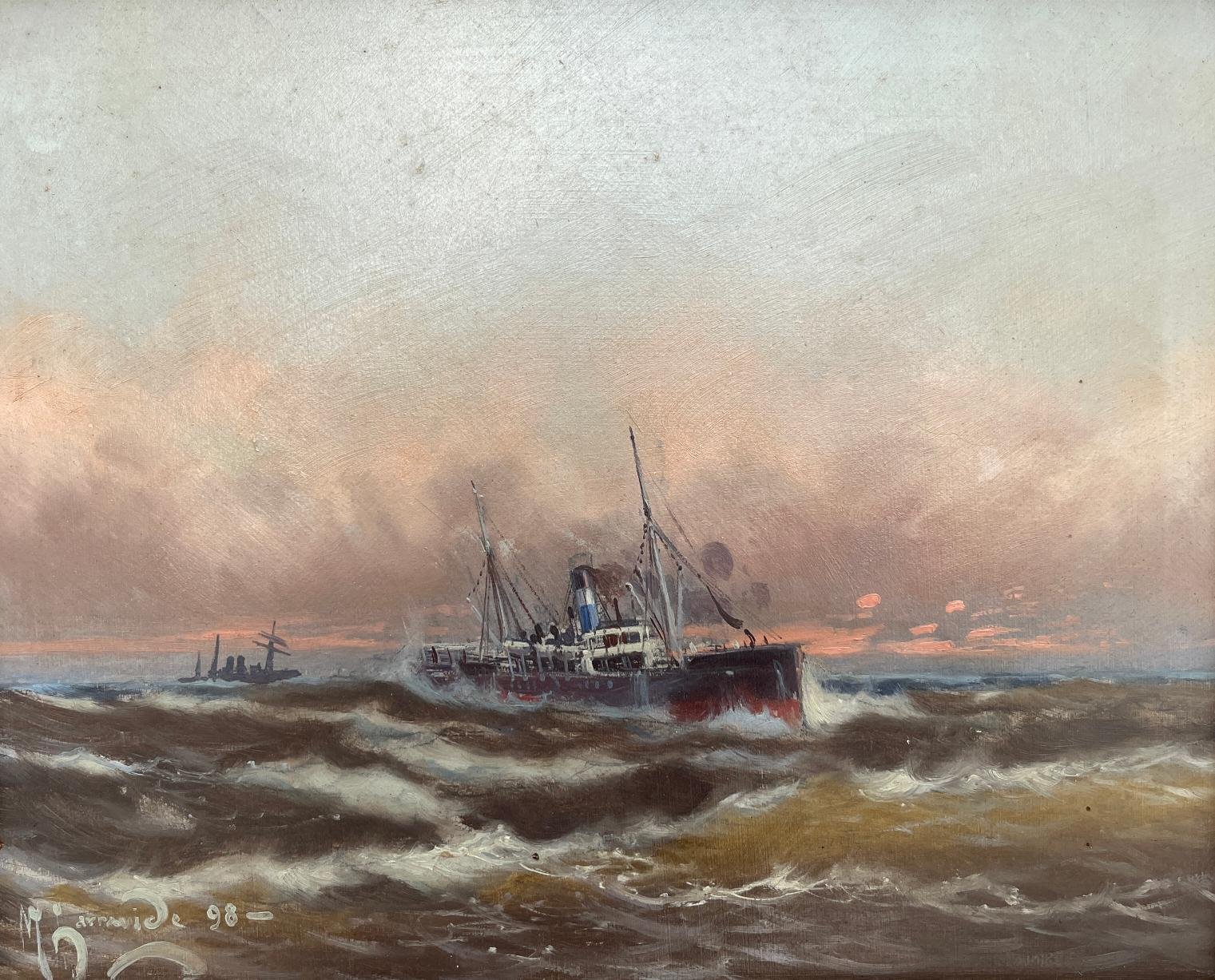 MANUEL LARRAVIDE (Escuela uruguaya, 1871-1910) Óleo sobre cartón «Marina» Firmado y fechado “98” abajo a la izquierda 23 x 28 cm