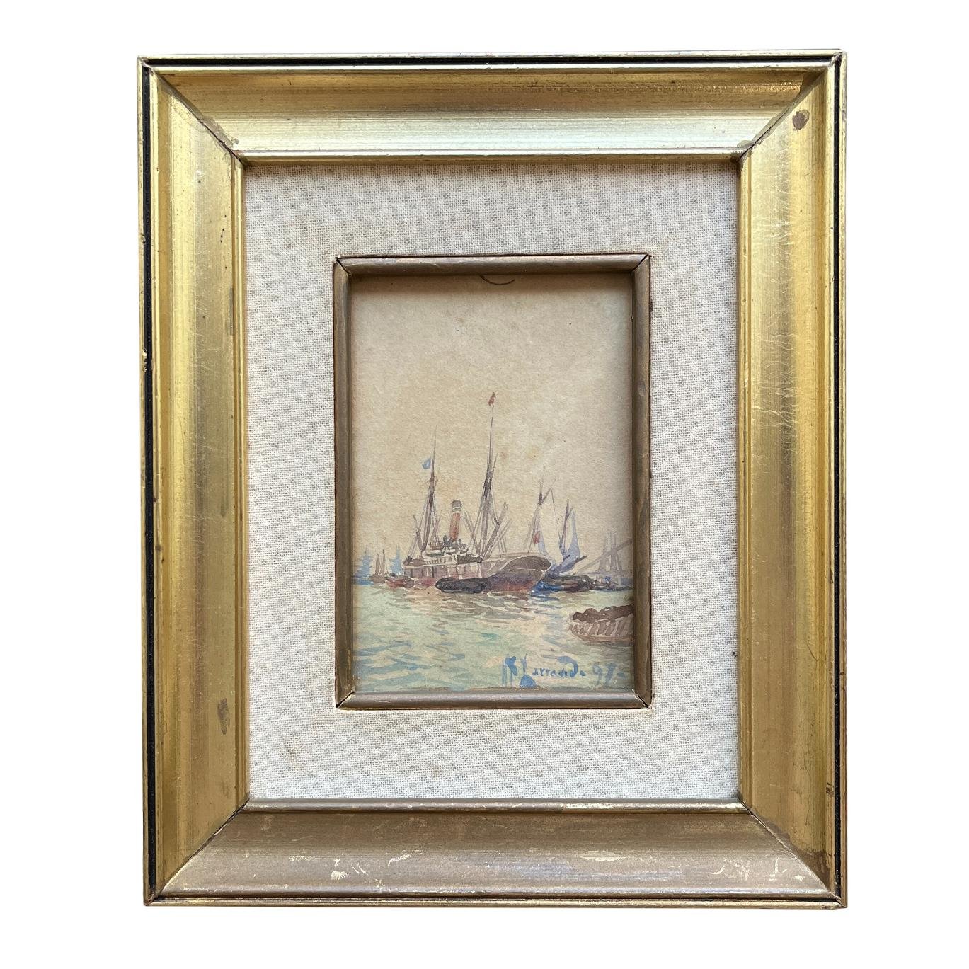 MANUEL LARRAVIDE (escuela uruguaya, 1831-1910). Acuarela sobre papel «Marina». Firmado y fechado «97» abajo a la derecha. 10,5 x 17 cm.
