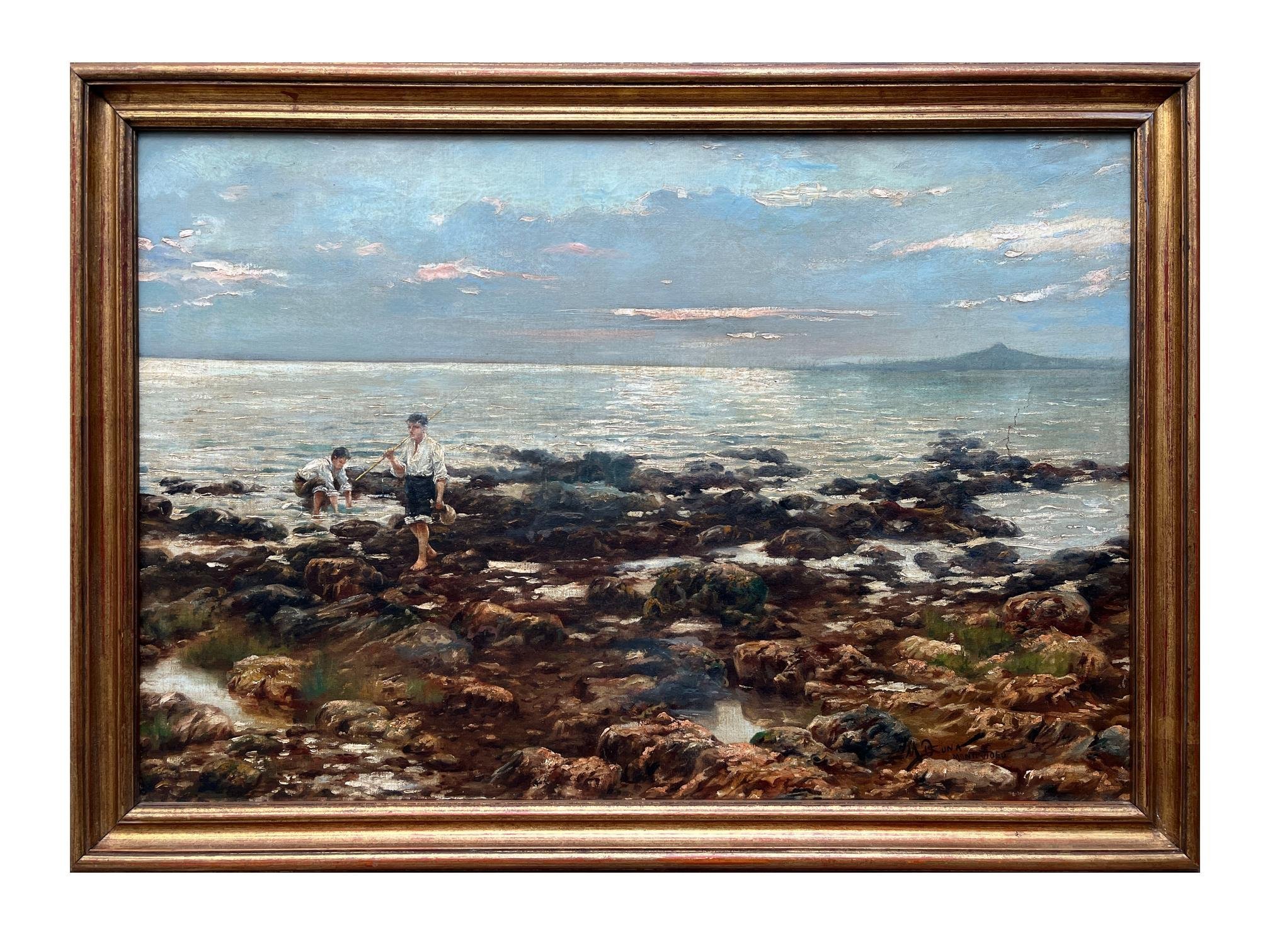 MANUEL OSUNA (escuela española, 1800-1900). «Bahía y cerro de Montevideo.» Firmado y situado «Montevideo» abajo a la derecha. 62 x 94 cm.