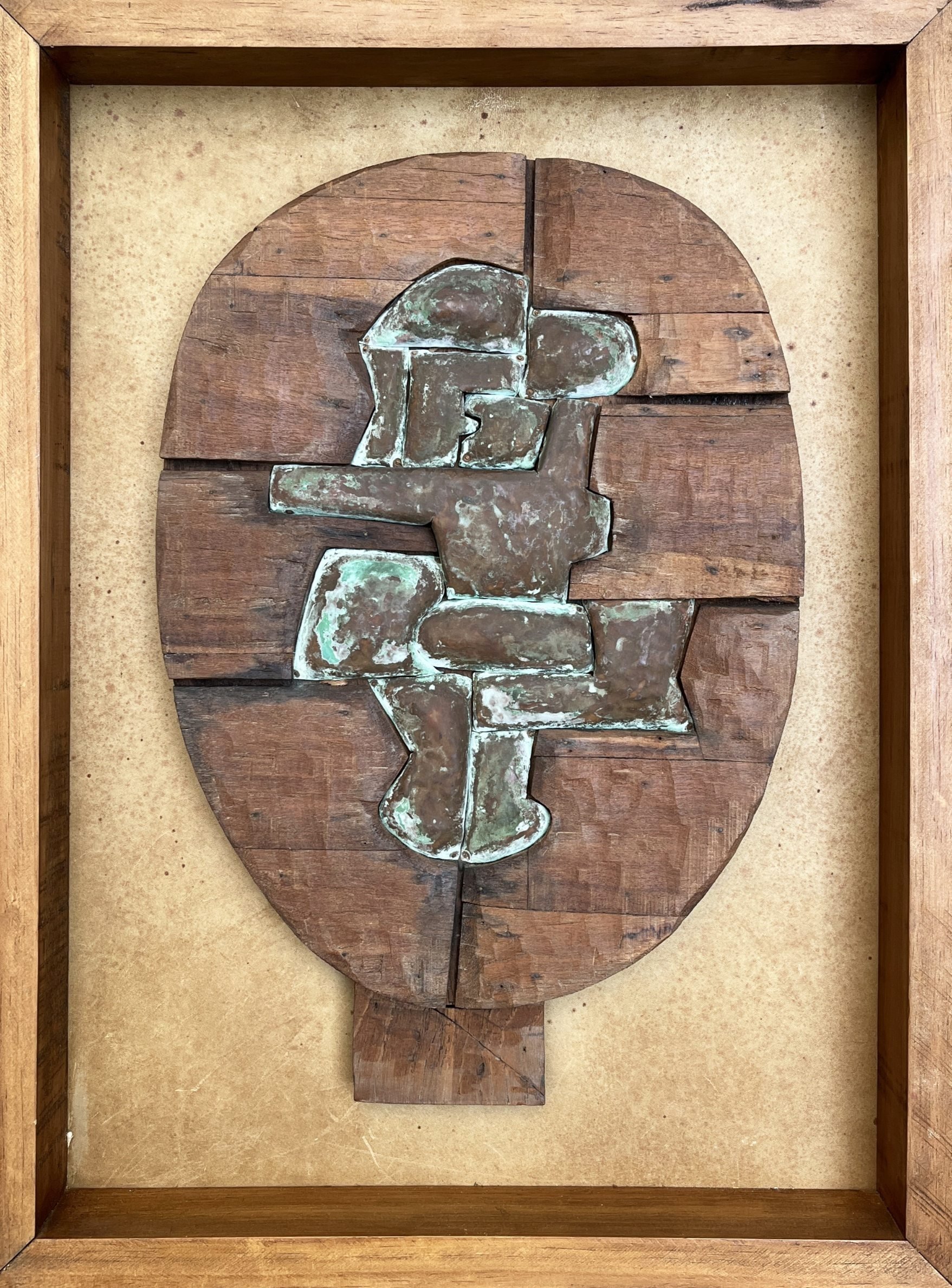 Escultura constructiva en madera dura y chapa de cobre