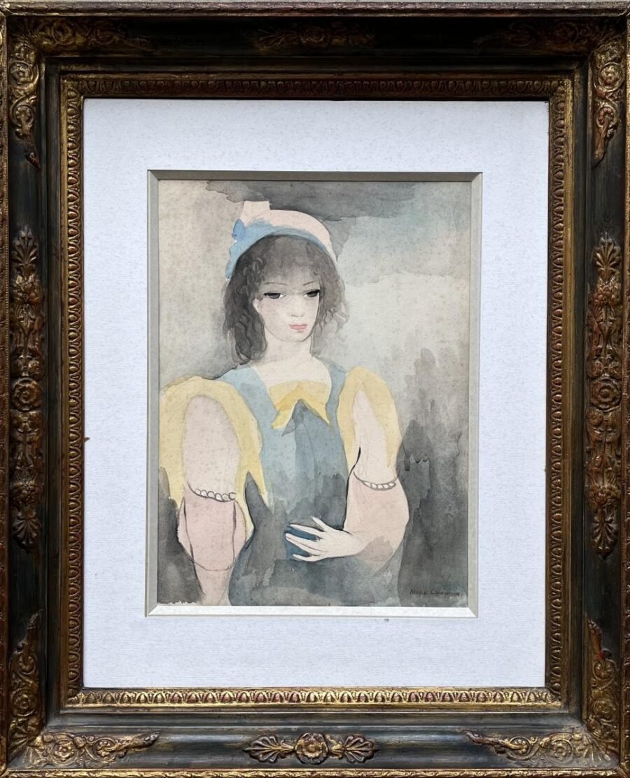 MARIE LAURENCIN (Escuela francesa, 1883-1956) Acuarela sobre cartulina «Dama» Firmado abajo a la derecha 40 x 30 cm