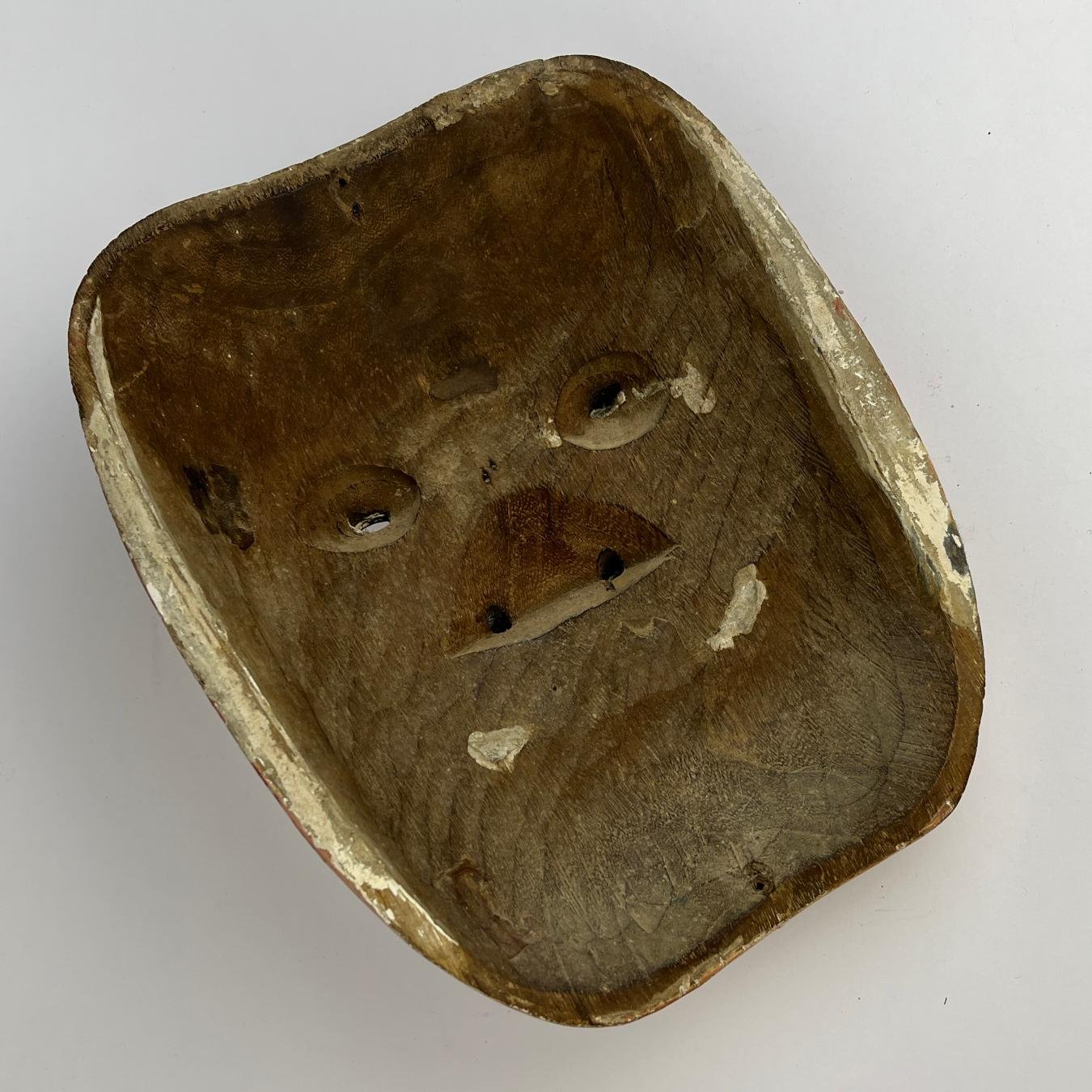 Máscara japonesa en madera tallada y policromada sobre estuco. «Shojo», personaje del teatro Noh. 24 x 18 cm.
