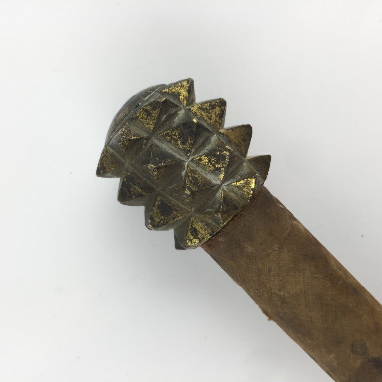 Maza siglo XIX en madera forrada en paño. Empuñadura y puntas en bronce. Largo 55 cm.