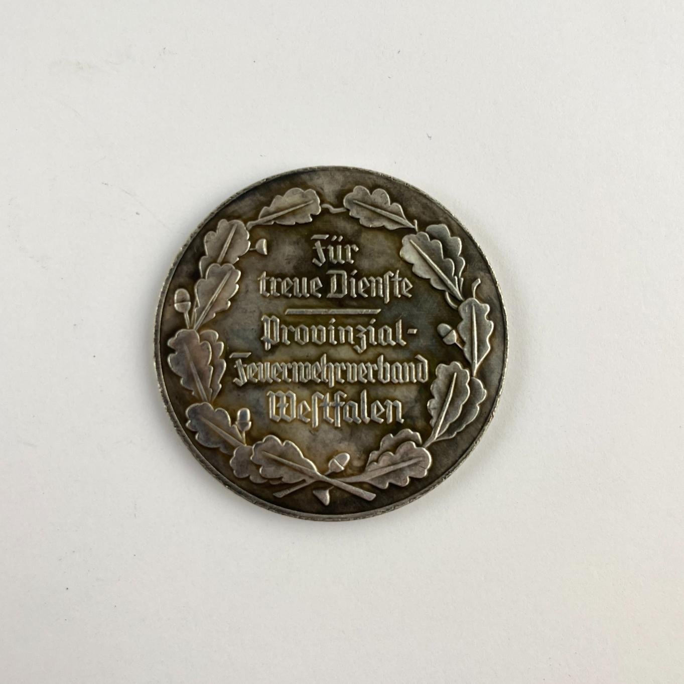 Medalla alemana época nacionalsocialista en metal blanco en homenaje a la designación de Hitler como canciller, entregada en la provincia de Westfalia.