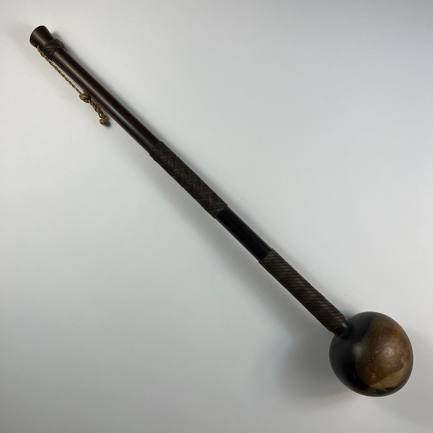 Maza africana en madera dura, con grip en hilo de cobre trenzado. Largo 63 cm.