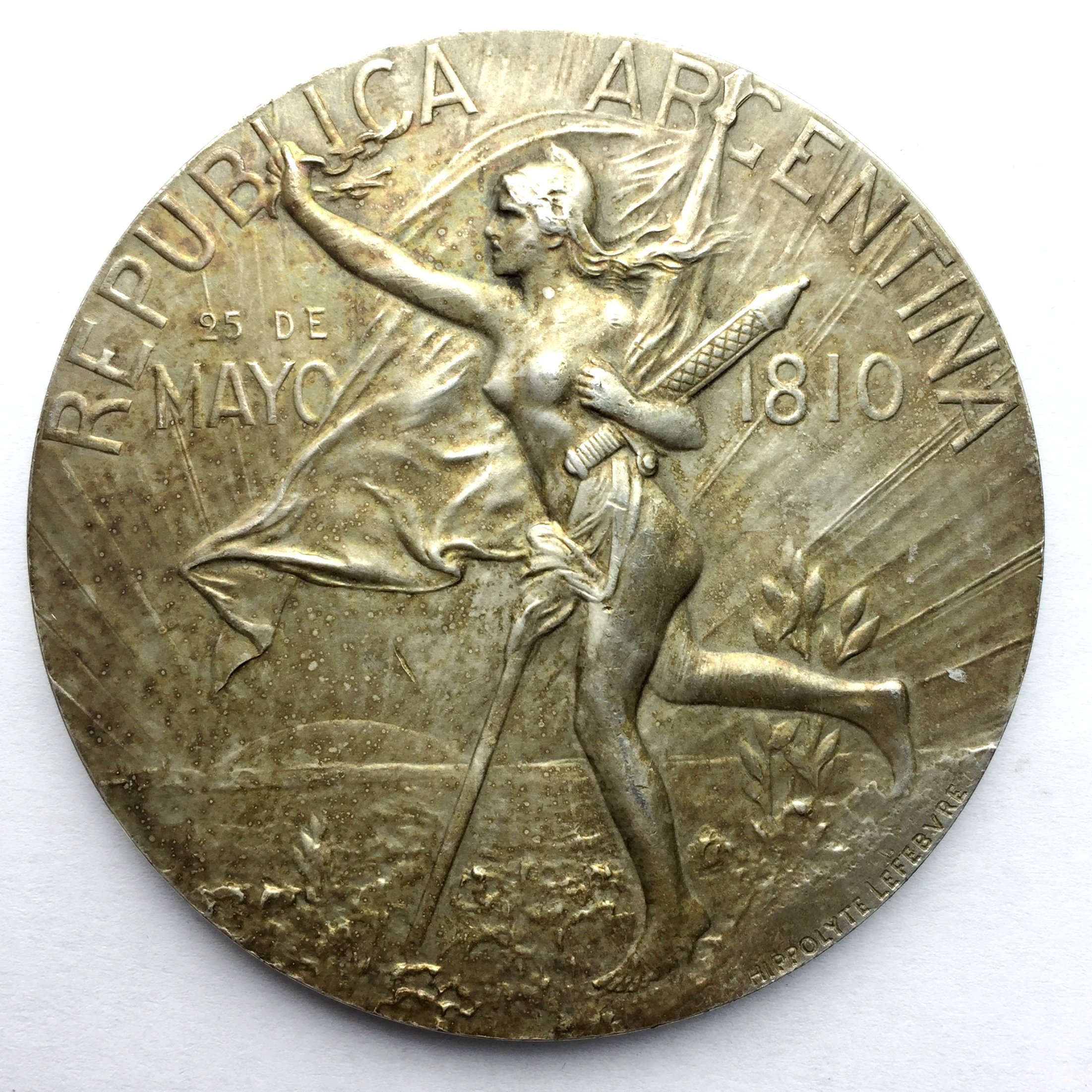 Medalla argentina en plata. «Centenario 1810-1910.» Diámetro 7 cm.