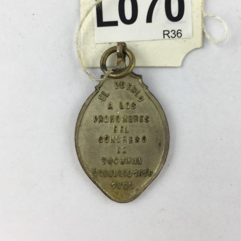 Medalla argentina en cobre plateado, con escudo nacional argentino e inscripción «El pueblo a los prohombres del Congreso del Tucumán de 9 de julio de 1816». Otorgada en 1899.