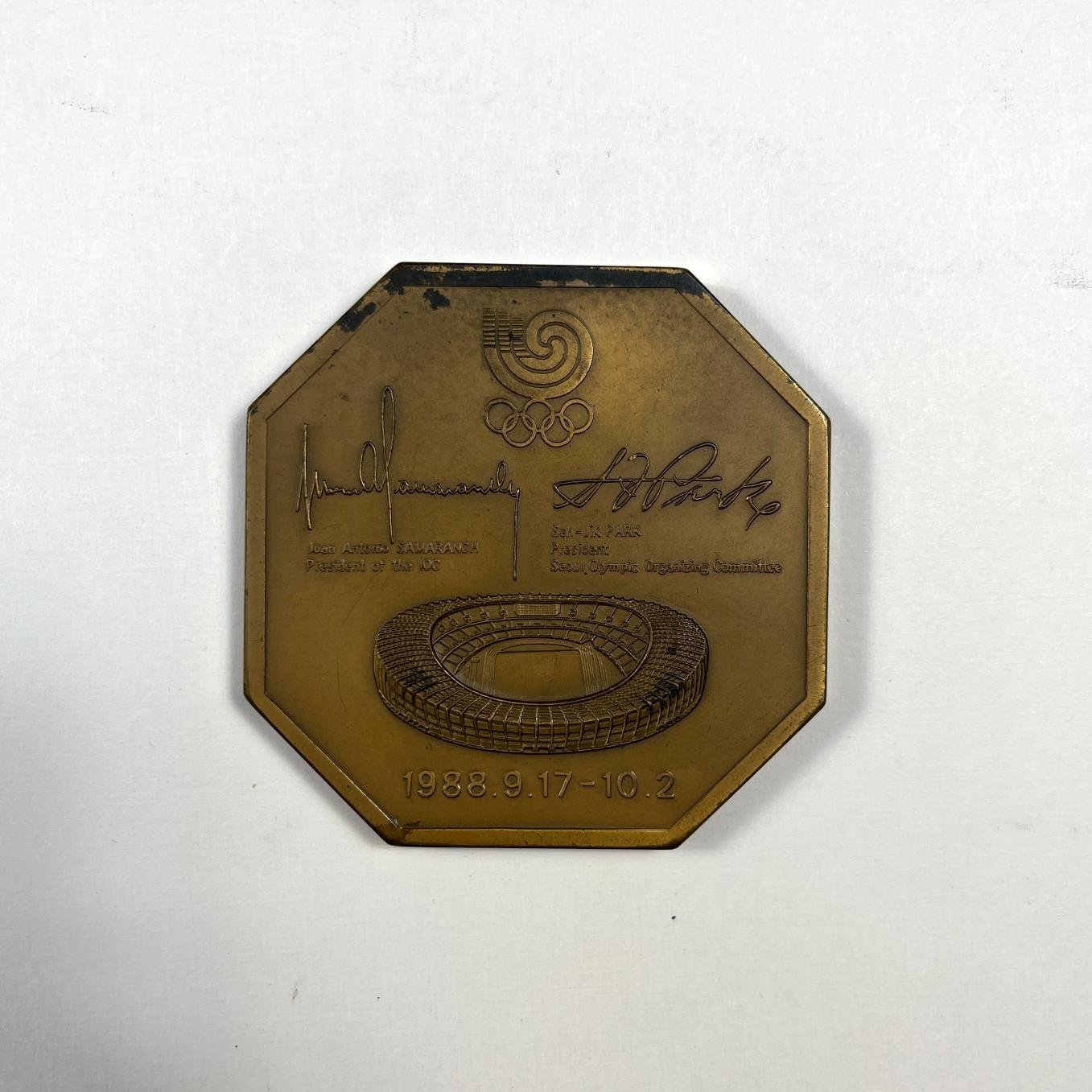 Medalla octogonal en bronce otorgada a los participantes de los Juegos Olímpicos Seúl 1988. Diámetro 70 mm.