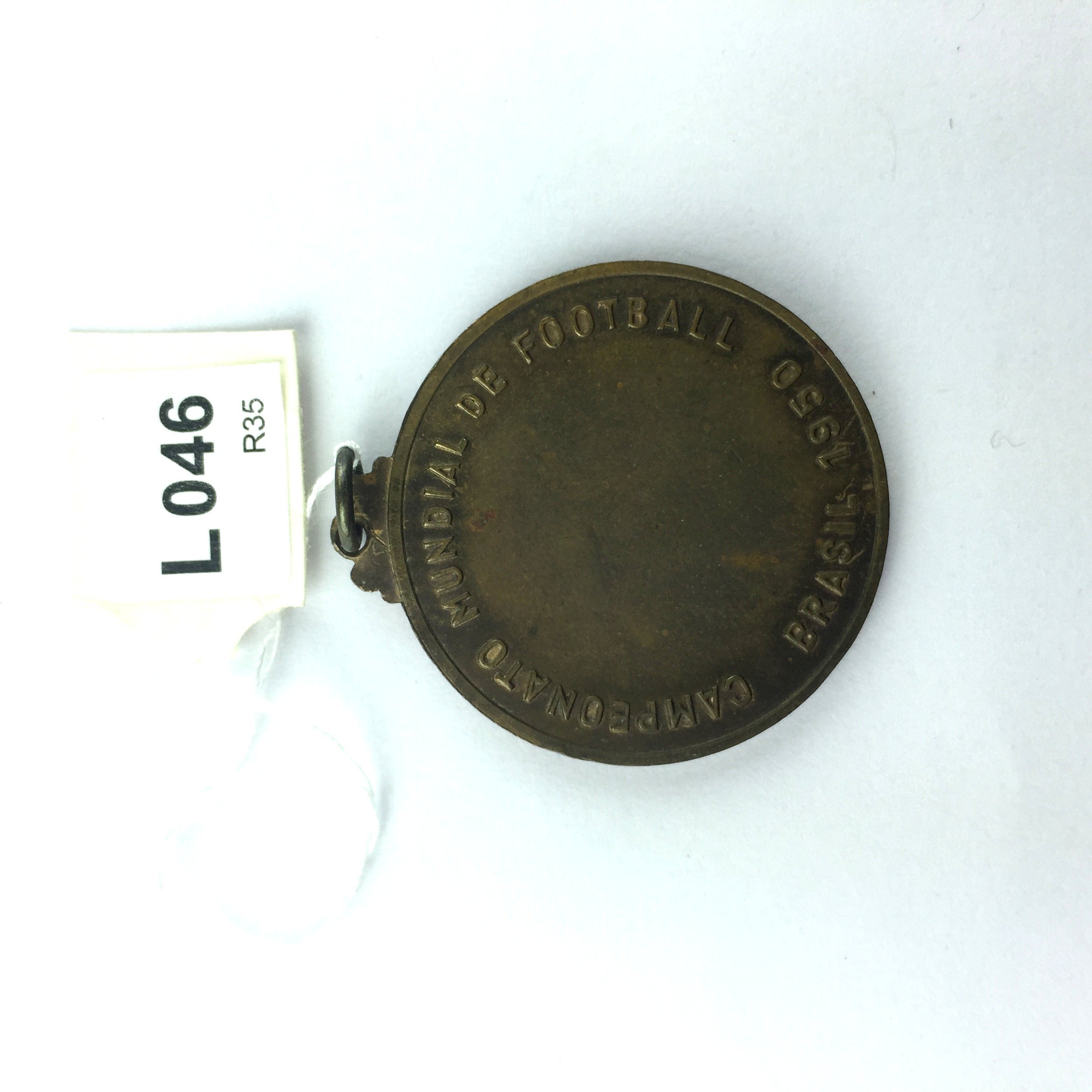 Medalla en cobre dorado y esmalte conmemorativa del Campeonato Mundial de Fútbol Brasil 1950.